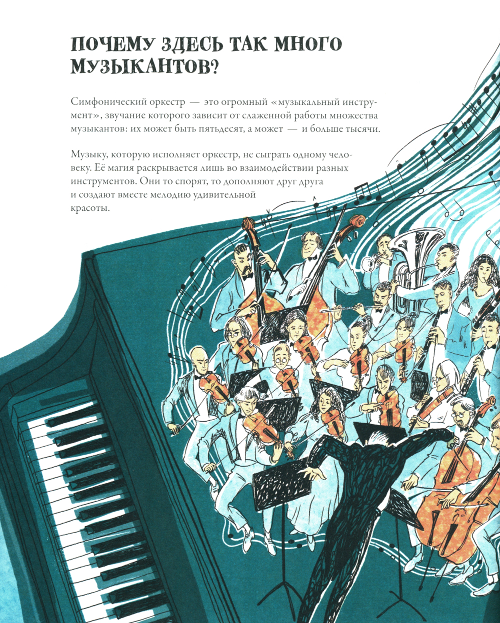 Добро пожаловать на выступление нарисованного оркестра! Анна Хопта придумала книгу, в которой можно не только познакомиться с оркестром, но и послушать музыку! А ещё разобраться в инструментах, которые её исполняют. После такого необычного концерта вы никогда не перепутаете скрипку с альтом или трубу с тромбоном. Не исключено, что вам так понравится один из инструментов симфонического оркестра, что вы сами захотите научиться на нём играть. Или выберете в будущем профессию дирижёра, рукам которого и подчиняется Музыка! Для среднего школьного возраста.| Издательство | Абраказябра |