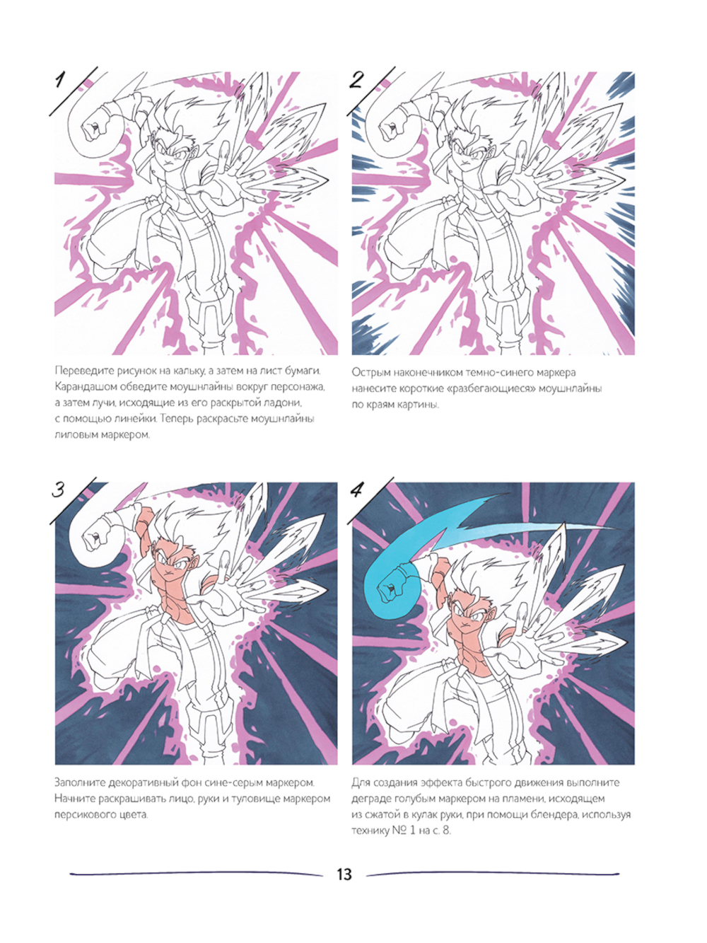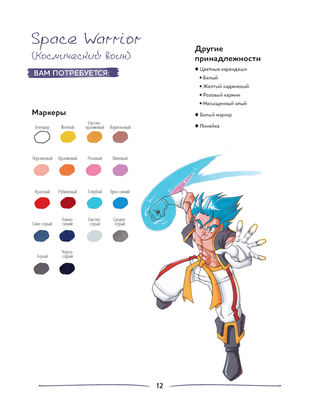 Секреты маркеров для настоящих фанатов жанра сёнэн! Семь иллюстраций с пошаговыми описаниями помогут вам создать красочные аниме-арты. Переведите рисунок-шаблон на бумагу или работайте прямо в этом пособии; запаситесь любимыми принадлежностями для рисования, в нашем случае это - спиртовые маркеры, цветные карандаши и пастель, - и в путь! Вам составят компанию яркие и харизматичные персонажи, которые жаждут приключений и великих битв! Создавайте яркие, насыщенные изображения с помощью несложных художественных техник, смешивайте цвета, добавляйте тени и придавайте каждому изображению объем, глубину и динамику - вы не только научитесь копировать готовые референсы, но и отточите навыки рисования маркерами, чтобы с легкостью создавать своих собственных героев. Восьмая модель станет отличным бонусом для творческого сёнэн-испытания!| Издательство | Контэнт-Канц |
