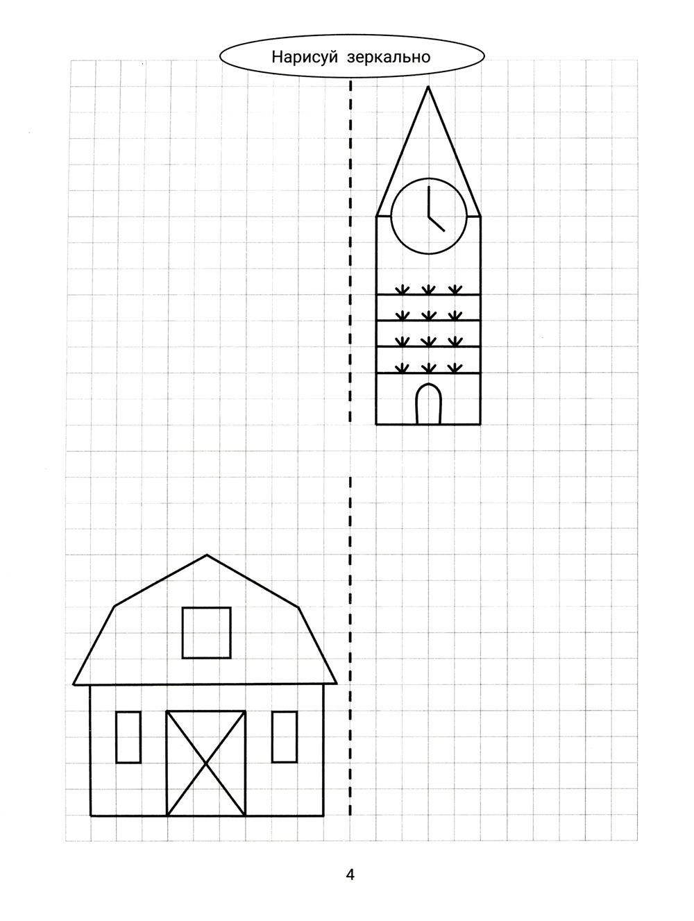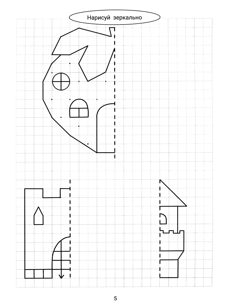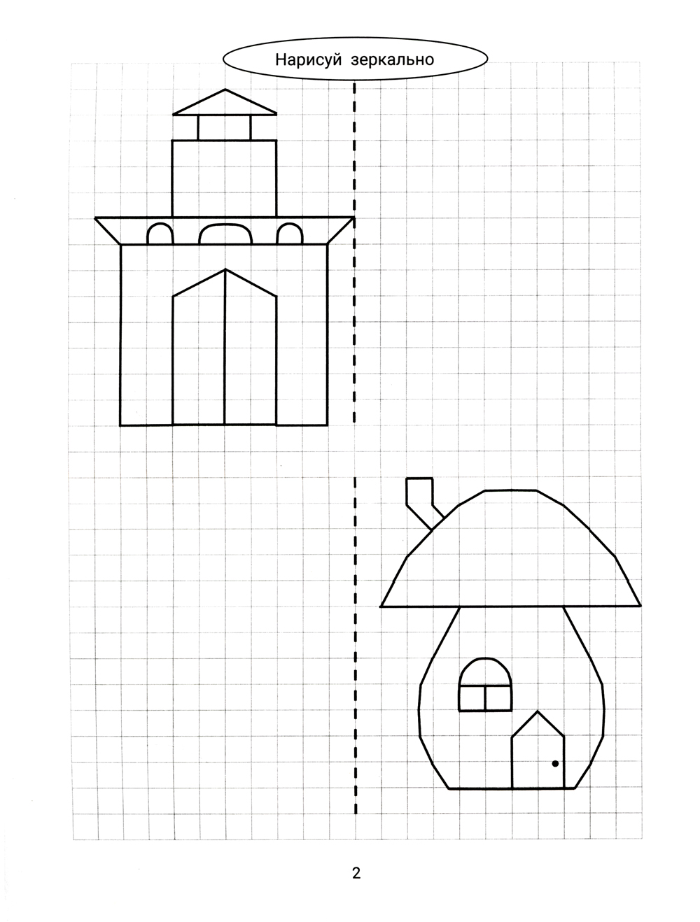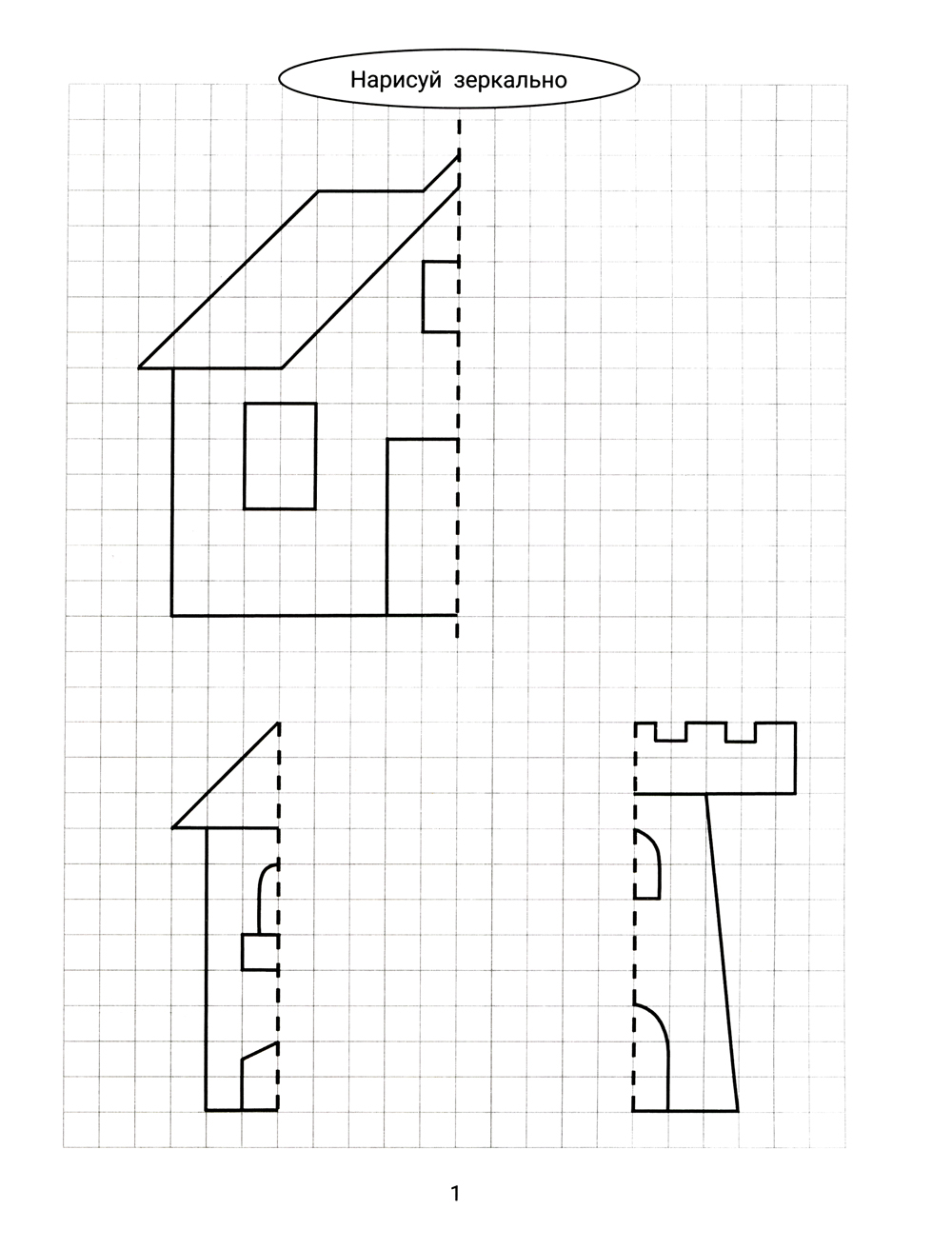 Аннотация: Нарисуй зеркально. Домики и замки