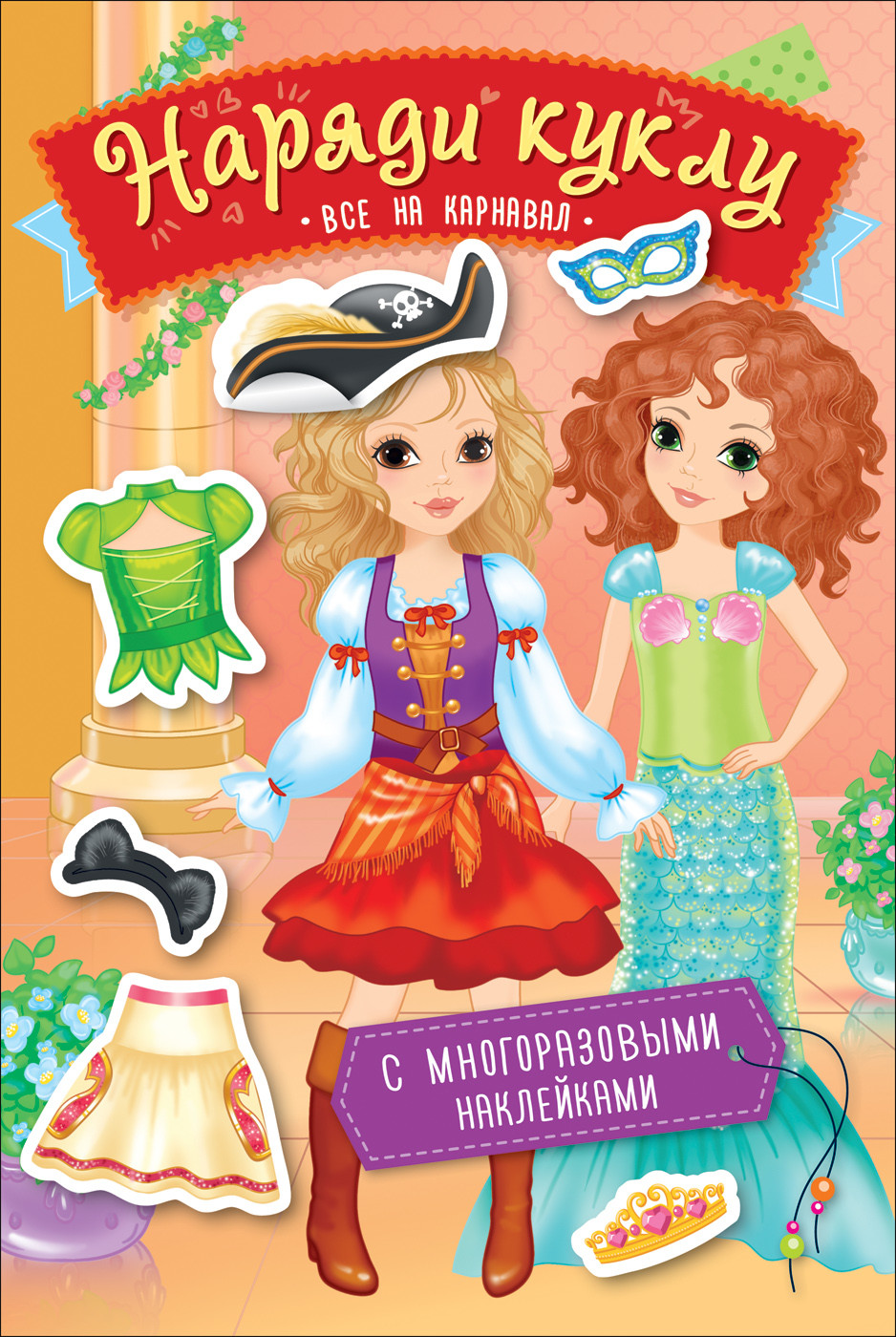 Самая увлекательная игра для маленьких модниц! Открывай яркую панорамную картинку, выбирай для веселых подружек одежду и аксессуары, приклеивай их на фигурки - и вот твои куколки-красавицы уже готовы к праздничному карнавалу! Наряды можно составлять в разных сочетаниях и переделывать по-новому - ведь многоразовые наклейки можно переклеивать сколько угодно раз!