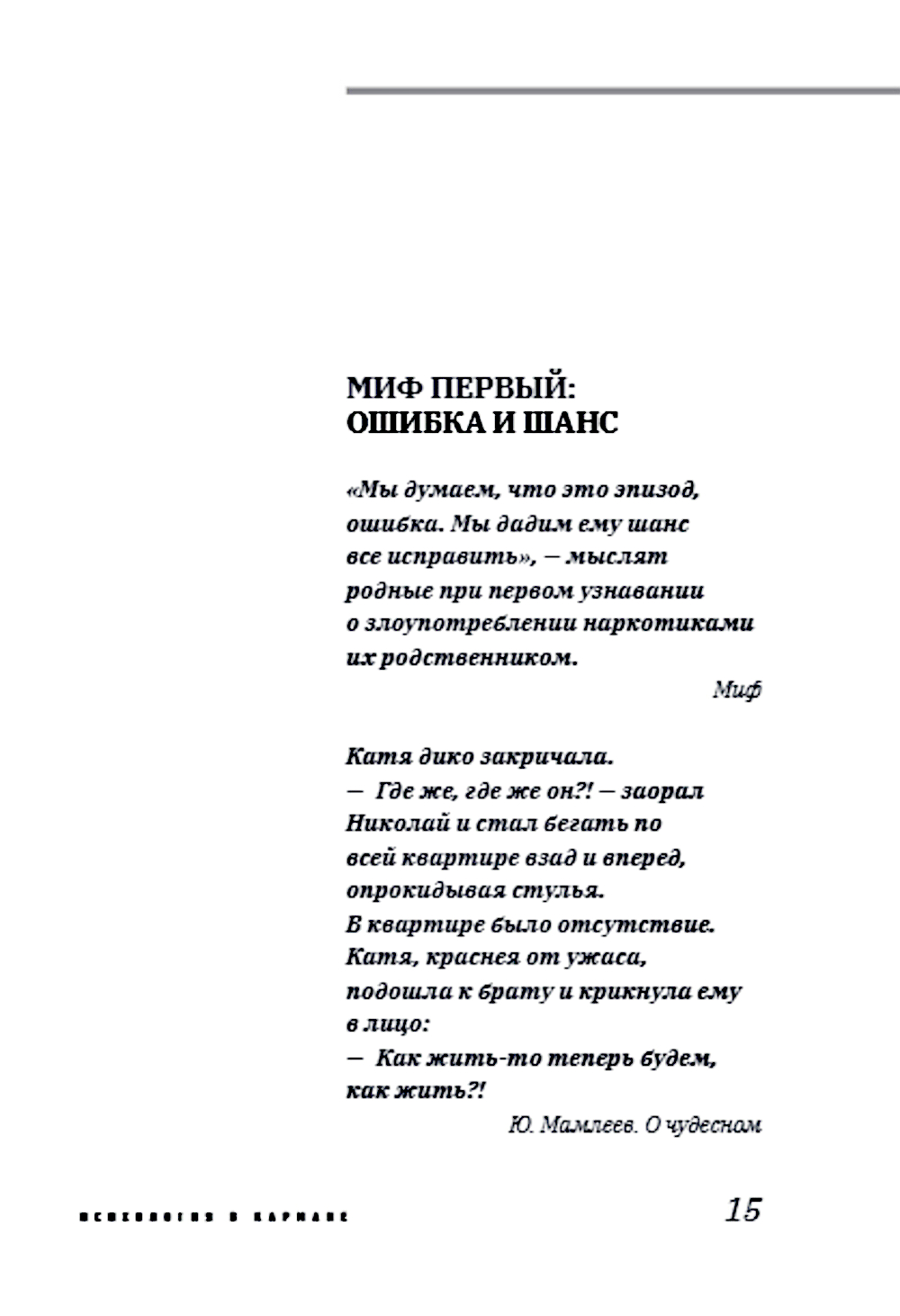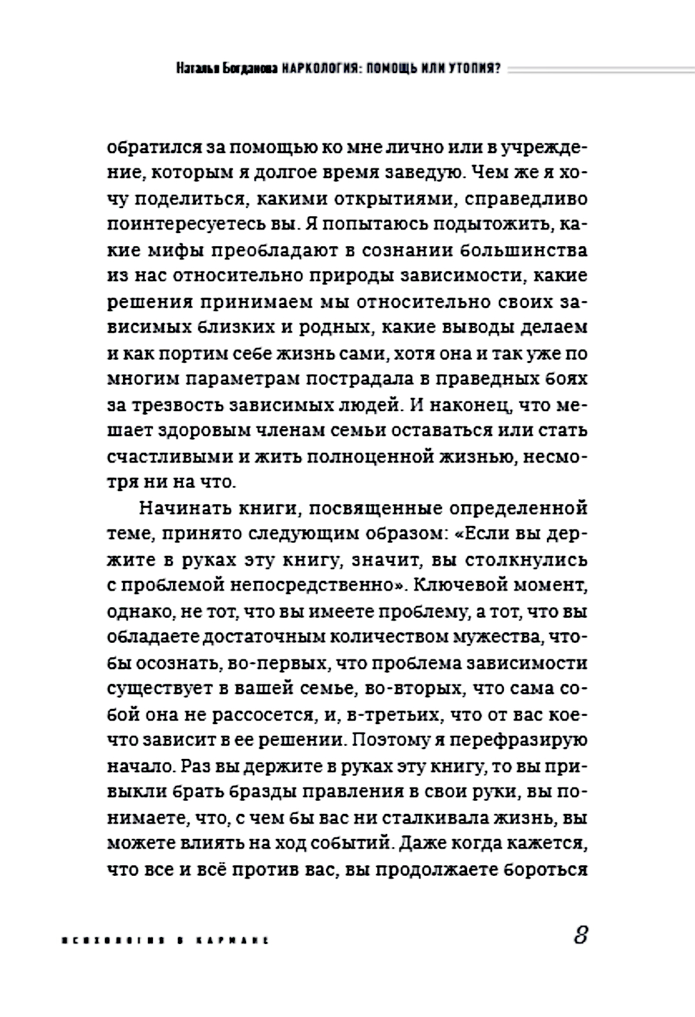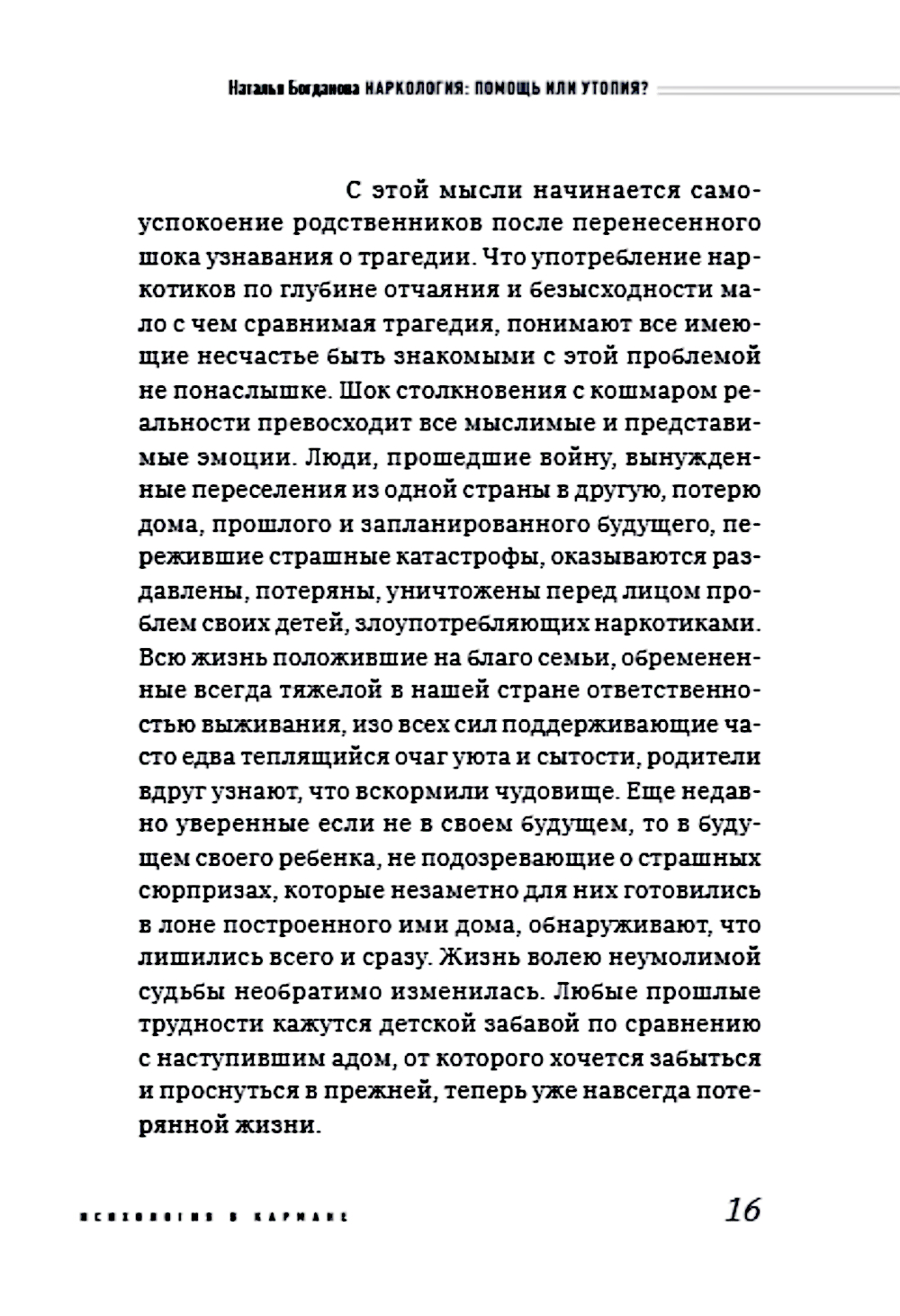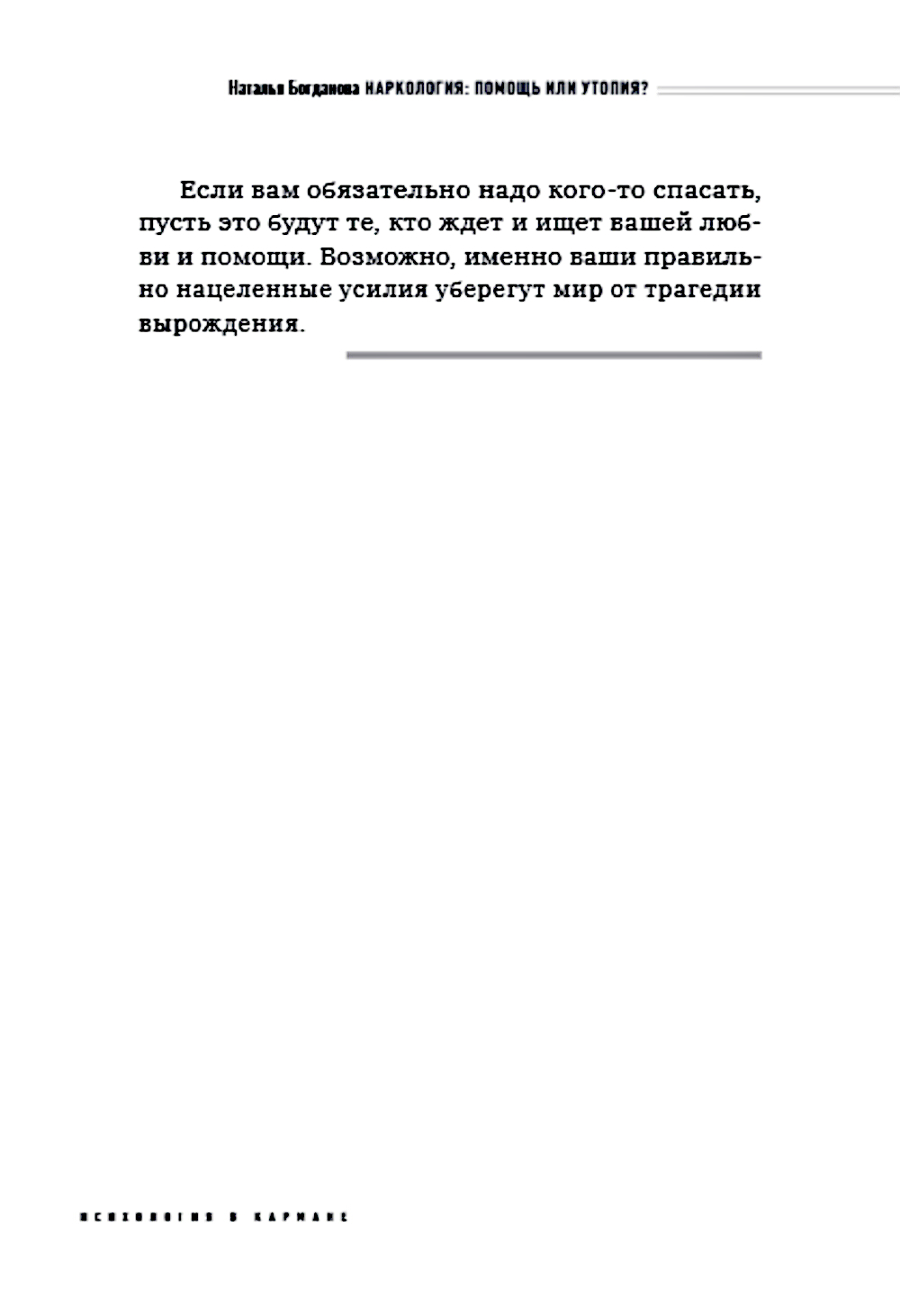 Правдивые истории о том, как глубоки и устойчивы неправильные представления о природе зависимости у большей части людей, включая самих зависимых, их родственников и медработников. Как сложно и мучительно обретать это понимание при попытках оказания помощи зависимым. Насколько непримирима, неэффективна и драматична борьба ценностей зависимых и здоровых. Книга о том, что существующее мироустройство безнадежно в плане надежд на освобождение человечества от пут зависимости. Бороться с кем, чем, зачем и как - вечные вопросы; они сродни экзистенциальным, которые волнуют любого столкнувшегося с проблемой зависимости не понаслышке. Истории из практики, описание особенностей работы наркологического стационара, яркие запомнившиеся ситуации, размышления о полученном опыте и, в сущности, банальный, но всегда неочевидный ответ: изменить простому смертному дано только себя и свою жизнь. Книга рассказывает о том, что сокрыто за стенами больницы. Как проходит лечение зависимых, какие цели преследуют пациенты, соглашаясь на госпитализацию, с какими трудностями приходится сталкиваться медицинским работникам при оказании помощи наркоманам и алкоголикам. Автор размышляет над вопросами, ответы на которые совсем не очевидны. Могут ли родственники и близкие больных влиять на результат лечения? Где находятся границы помощи? Чья обреченность драматичней: зависимого или его близкого? Не эфемерны ли надежды на выздоровление? Где черпать силы, чтобы продолжать жить? Книга побуждает к раздумьям и поискам, полемизирует с официальными подходами, дает необходимую поддержку страдающим близким и родственникам пациентов в любых принимаемых ими решениях. Книга адресована людям, личные и профессиональные судьбы которых переплетены с жизненными путями зависимых.