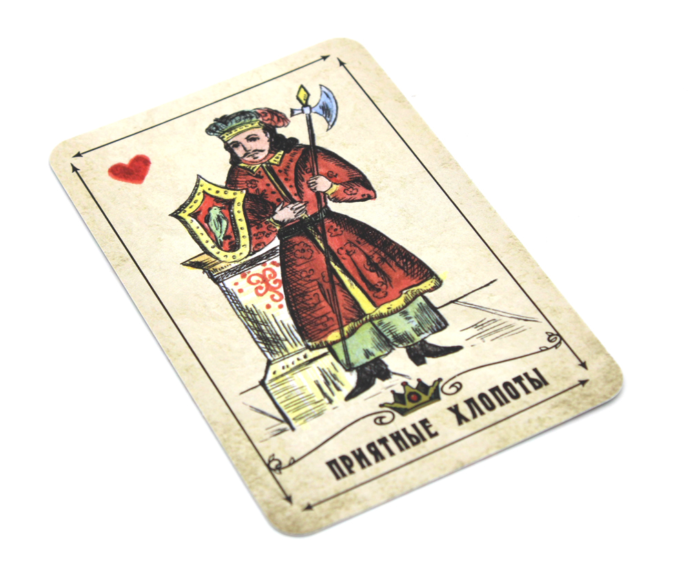 История возникновения «Народных игральных карт» туманна и загадочна. Но одно мы знаем наверняка - на них очень любили гадать в XIX и XX веке. Погрузитесь в увлекательный мир игральных карт, на которых узнавали свою судьбу представители провинциального мещанского сословия и крестьяне, вместе с шестой колодой в серии «Наследие». Поможет вам в этом инструкция Евгении Устиновой: в ней можно изучить традиции старинных гаданий на этих картах.| Издательство | Издатель А.Г.Москвичев |