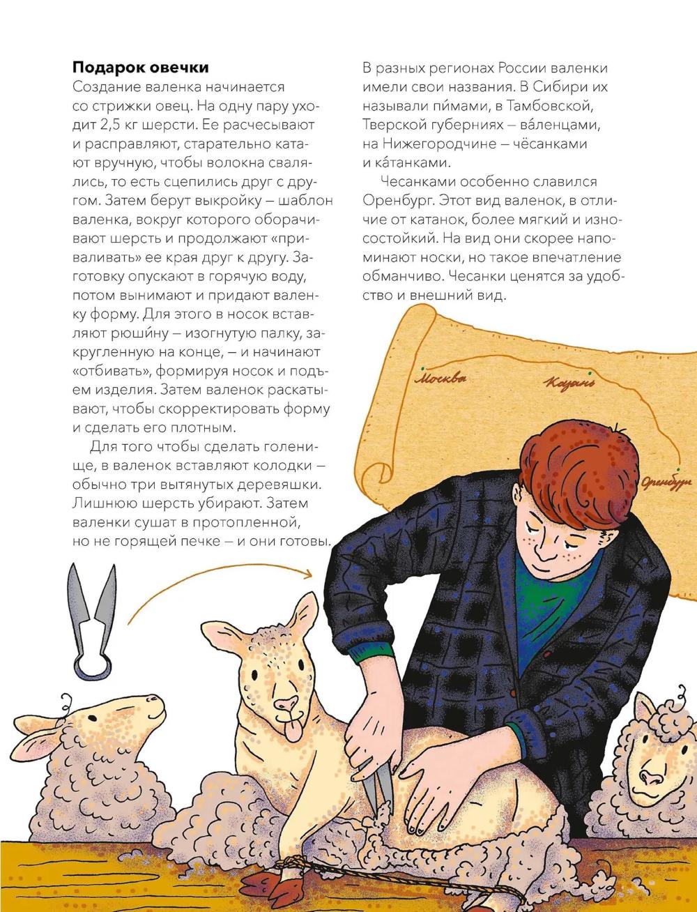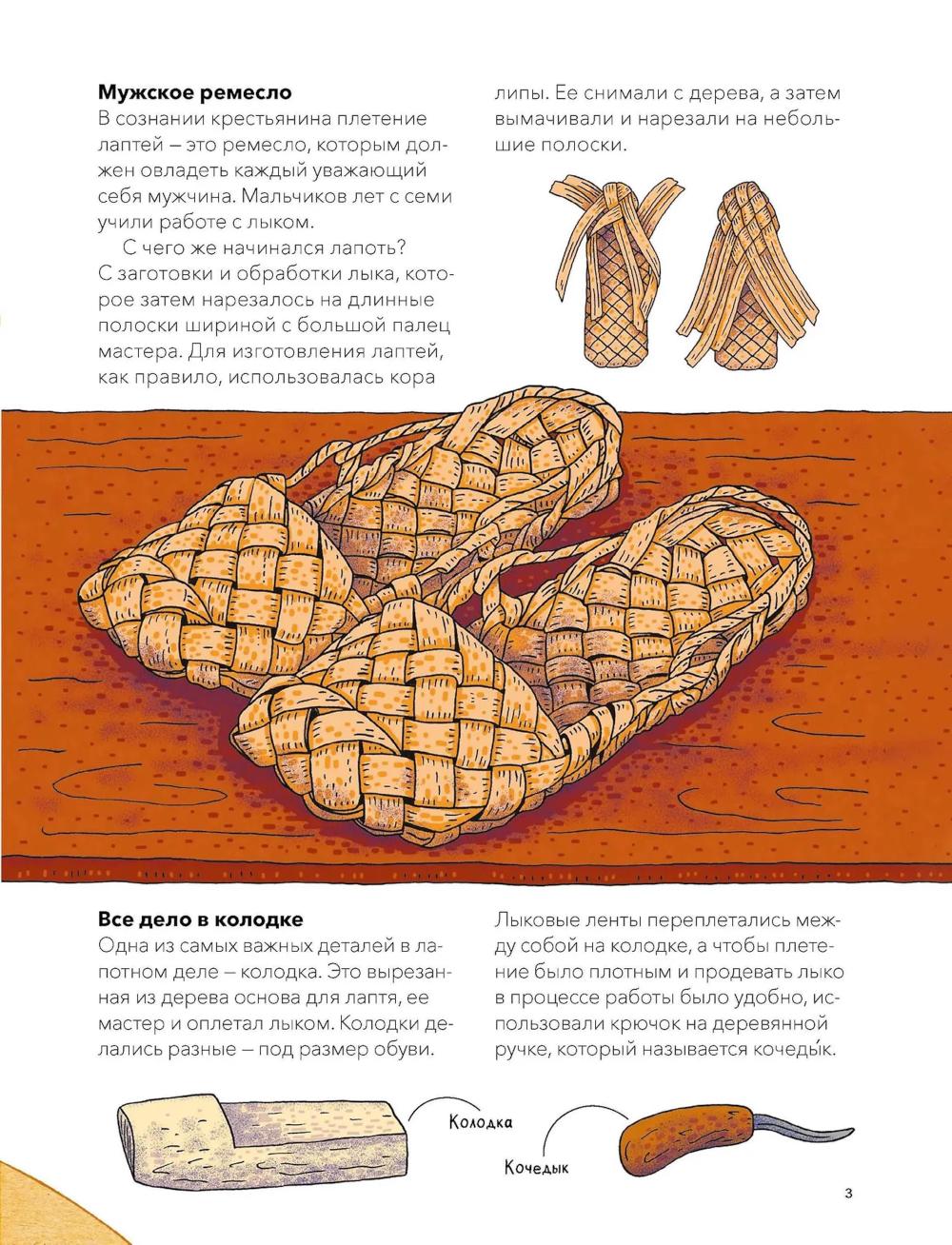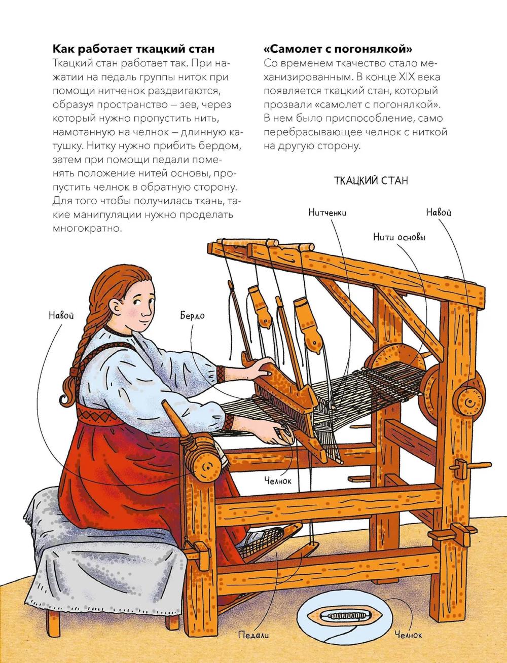 Книга из серии «Наша страна Россия. Как жили на Руси», в которой собраны небольшие красочные издания по 16 страниц, созданные специально для первого чтения и занятий с детьми. Простые тексты, написанные историками и этнографами, и яркие иллюстрации помогут ребенку увидеть, как жили наши предки, научат бережно относиться к истории и ценить традиции своей страны. Почему плетение лаптей считалось мужским занятием? Какие валенки валяли специально для модниц? Как из льна и крапивы делали нити для тканей? Почему оренбургский пуховый платок такой тонкий и мягкий? Книга раскроет секреты старых мастеров, расскажет о самых популярных ремеслах и красивейших вещах, которые создавали русские умельцы. Вы узнаете об устройстве прялки и ткацкого стана, о специальных инструментах, которые нужны были ремесленникам для работы. А еще о том, чем московские лапти отличались от мордовских, и о разных видах валенок, которые носили в регионах России: пимах, валенцах, чесанках и катанках.| Издательство | Манн, Иванов и Фербер |