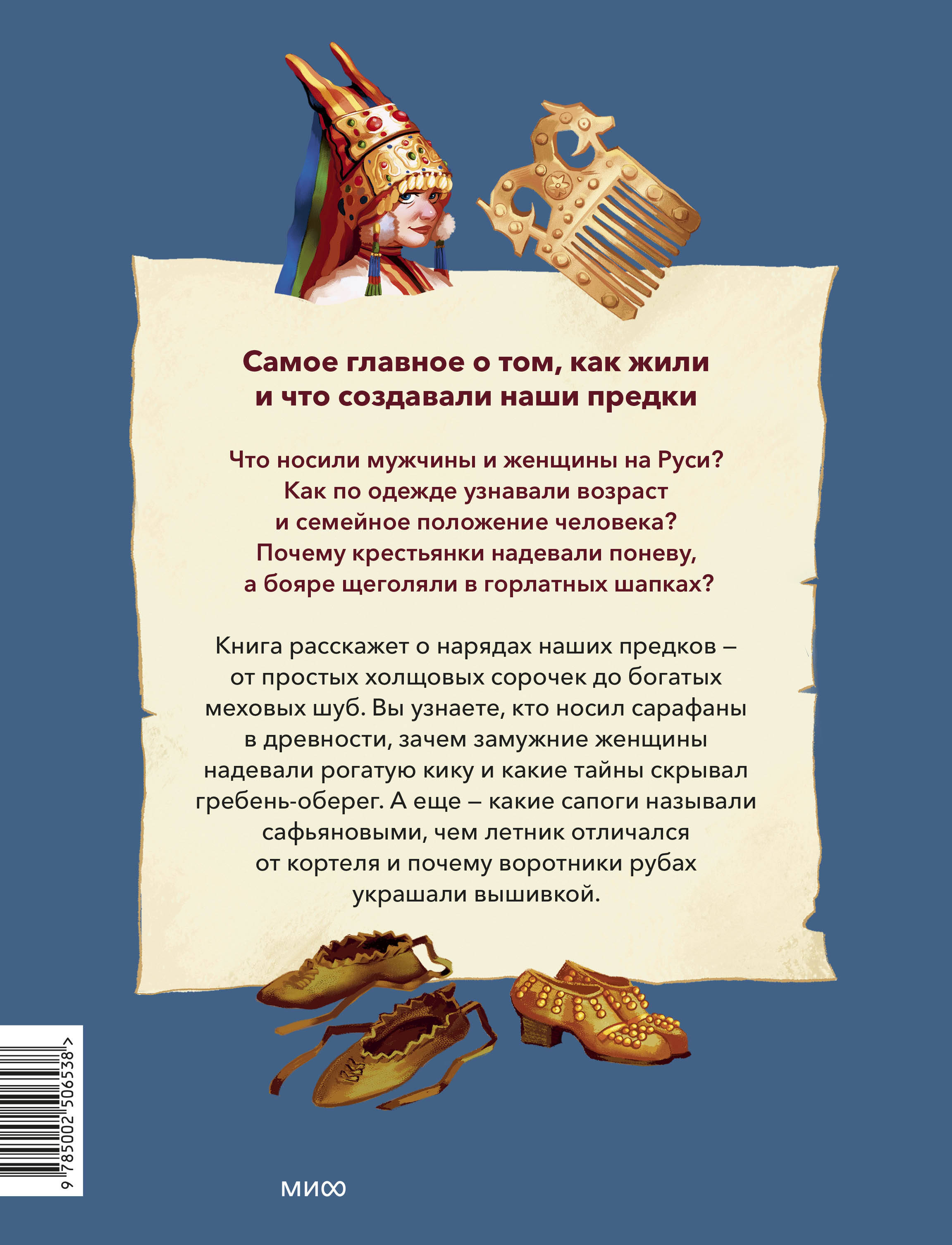 Одежда на Руси была и защитой от холода, и показателем достатка. Мужчины носили рубахи, порты и кафтаны, женщины - платья, поневы. Богатые наряды шили из ярких тканей, расшивали узорами и дополняли украшениями. Каждый костюм хранил в себе традиции.| Издательство | МИФ |