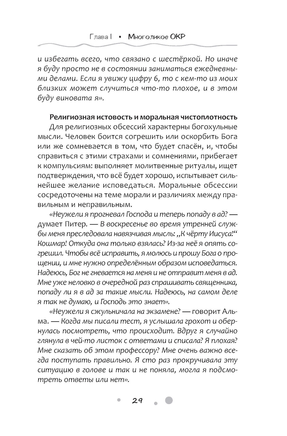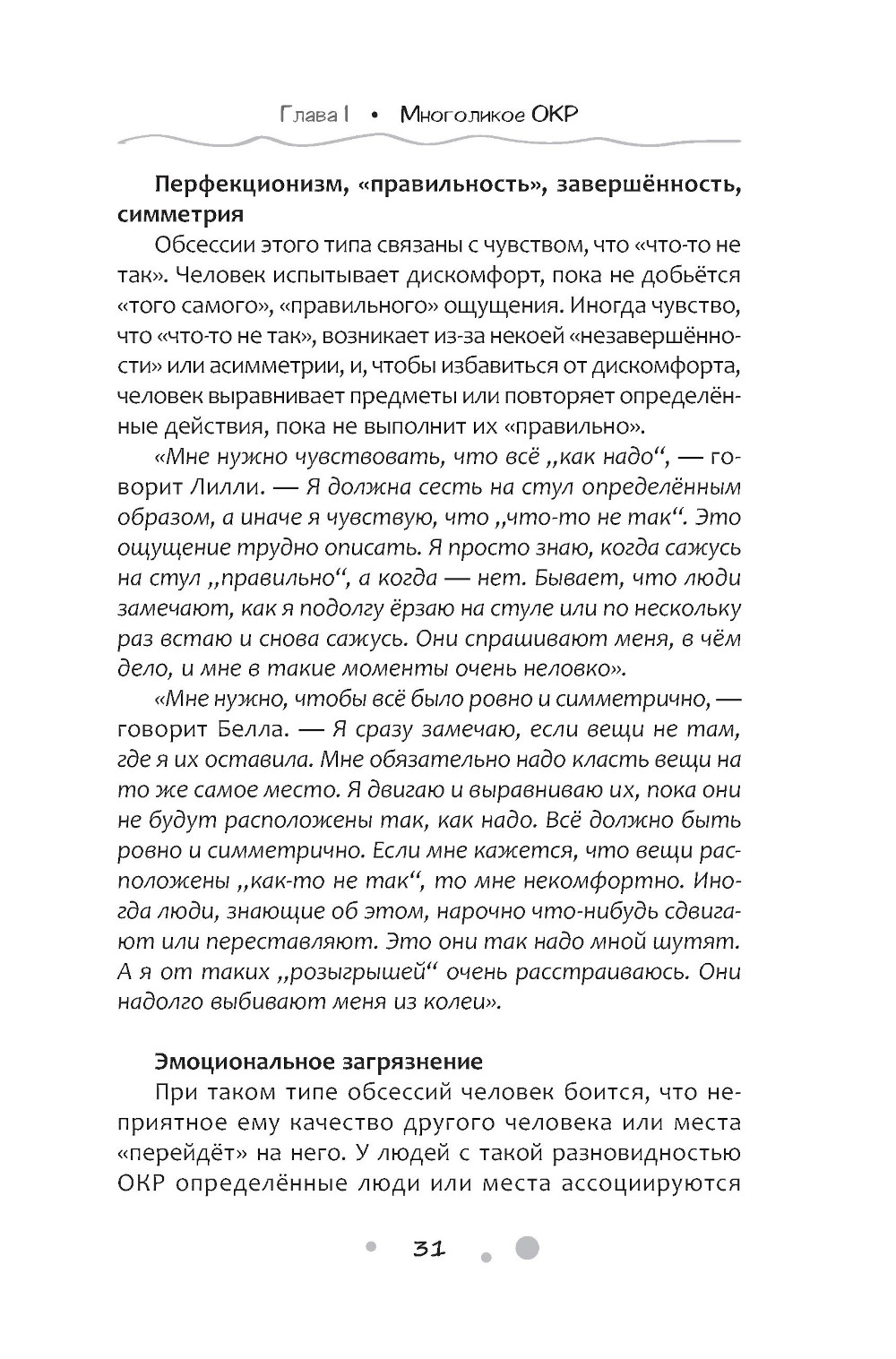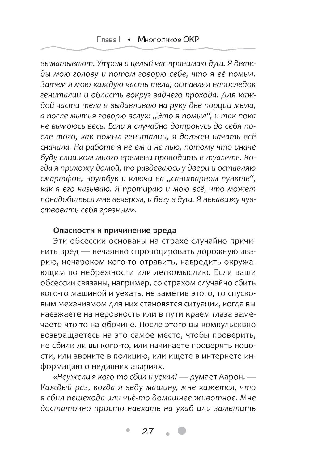 Книга, которую вы держите в руках, - это руководство, призванное помочь вам жить свободной и полноценной жизнью без ОКР (обсессивно-компульсивного расстройства). Приведенные в ней методики объединяют в себе техники экспозиционной терапии с подавлением реакции, терапии принятия и ответственности, а также осознанности и сострадания, эффективность которых была доказана в ходе клинических исследований. На этих страницах вы найдете полезную информацию и множество примеров из практики и рекомендаций, касающихся того, как применить эти методики - и освободиться от правил ОКР, которые мешают вам жить. Особенно стоит отметить сравнение автором своей методики с техникой айкидо, в которой противник рассматривается как учитель, а его энергию вы обращаете себе на пользу.
