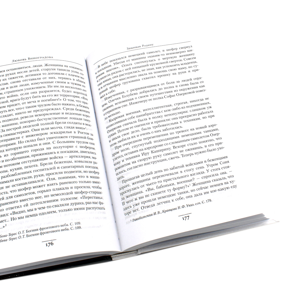 Комплект из 2 книг: «Нас называли ночными ведьмами» Эта книга посвящена легендарному 46-му гвардейскому Таманскому, дважды орденоносному полку ночных бомбардировщиков, который был создан в октябре 1941 года. В истории Великой Отечественной войны этот полк известен как «ночные ведьмы»: в нем служили только женщины - от командира полка до техника. В основном это были совсем молодые девушки, вчерашние школьницы и студентки. За годы войны девушки сделали 24 тысячи боевых вылетов: бомбили немцев на Дону, в Ставрополье, на Кавказе, на Кубани, в Белоруссии, Польше, Восточной Пруссии. 25 летчиц и штурманов получили звание Героя. Об их подвигах рассказывают Ирина Ракобольская, начальник штаба полка, и Герой Советского Союза Наталья Кравцова (Меклин), командир звена, сбросившего на врага 147 тонн бомб. «Защищая Родину. Летчицы Великой Отечественной» В созданной легендарной советской летчицей Мариной Расковой «Авиачасти № 122» не было мужчин. Все ее воины - летчики, штурманы, техники - вчерашние студентки, работницы фабрик и заводов, воспитанницы аэроклубов, которые встали в строй и прошли долгую дорогу войны до дня Великой Победы. Исследователь Любовь Виноградова работала в архивах, изучала мемуары очевидцев, встречалась с участниками событий и членами их семей. Результатом этого кропотливого труда явилась уникальная историко-документальная книга, в которой детально, с любовью и горечью рассказывается об удивительных девушках, главным событием в жизни которых стала война. У многих героинь книги судьба была короткой и трагической. Свои жизни они отдали за Родину, которую любили и сумели спасти.| Издательство | КоЛибри |