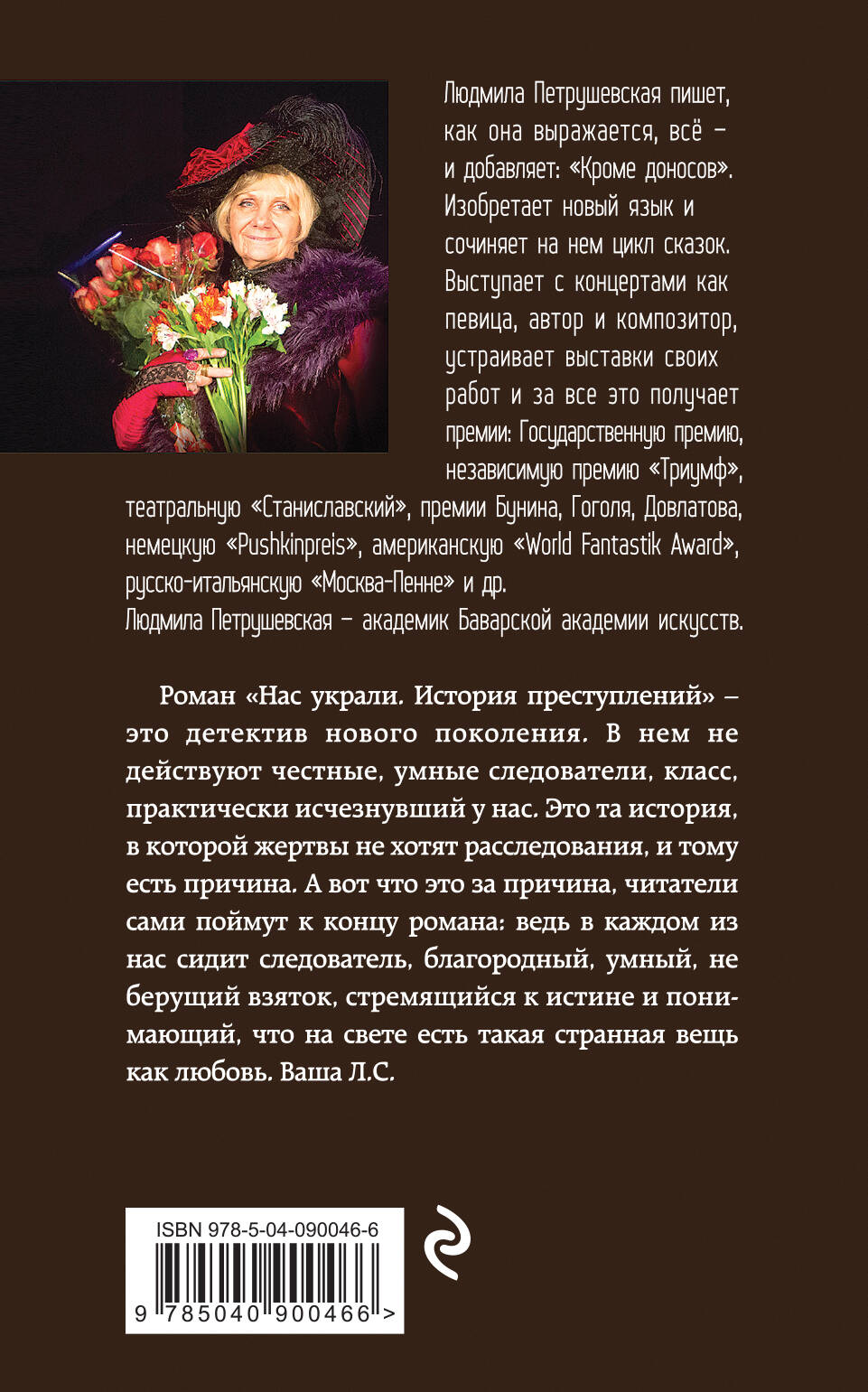 Роман "Нас украли. История преступлений" - это детектив нового поколения. В нем не действуют честные, умные следователи, класс, практически исчезнувший у нас. Это та история, в которой жертвы не хотят расследования, и тому есть причина. А вот что это за причина, читатели сами поймут к концу романа: ведь в каждом из нас сидит следователь, благородный, умный, не берущий взяток, стремящийся к истине и понимающий, что на свете есть такая странная вещь, как любовь. Ваша Л.С.| Издательство | ООО "Издательство "Эксмо" |