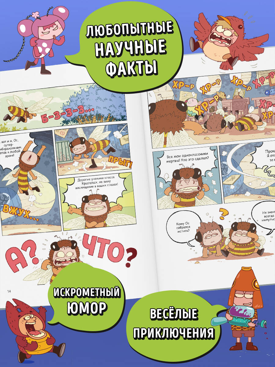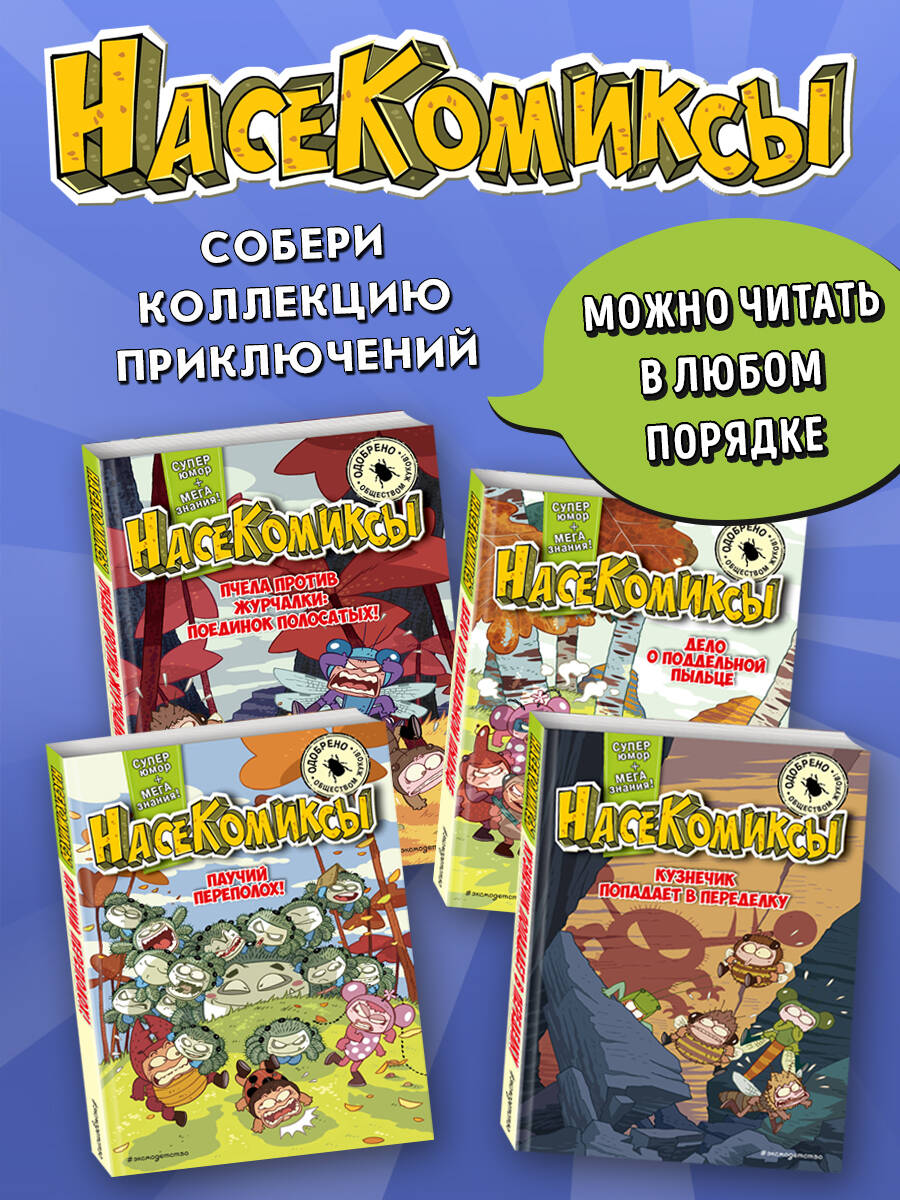 Долгожданное продолжение серии познавательных комиксов о насекомых! Герои комикса - совсем как настоящие дети: ходят в школу, дружат, попадают в переделки, но… все они - НАСЕКОМЫЕ! Скорее открывай книгу про насекомых и узнай, что за новичок-невидимка появился в классе Крылатых, почему журчалка и пчела постоянно устраивают воздушные дуэли, какая большая мечта есть у маленького муравья и многое другое! Присоединяйся к приключениям крутых букашек, читай о них смешные истории в формате красочного комикса - и одновременно узнавай самые любопытные научные факты о жуках, бабочках и других насекомых! В конце каждой главы этой веселой энциклопедии про насекомых тебя ждут познавательные страницы о жизни и устройстве этих удивительных существ! Книги серии стали бестселлером в странах Азии и были включены в «Топ-100 книг, рекомендованных к прочтению подросткам»! «НасеКомиксы» - лучший подарок по любому поводу!| Издательство | ООО "Издательство "Эксмо" |
