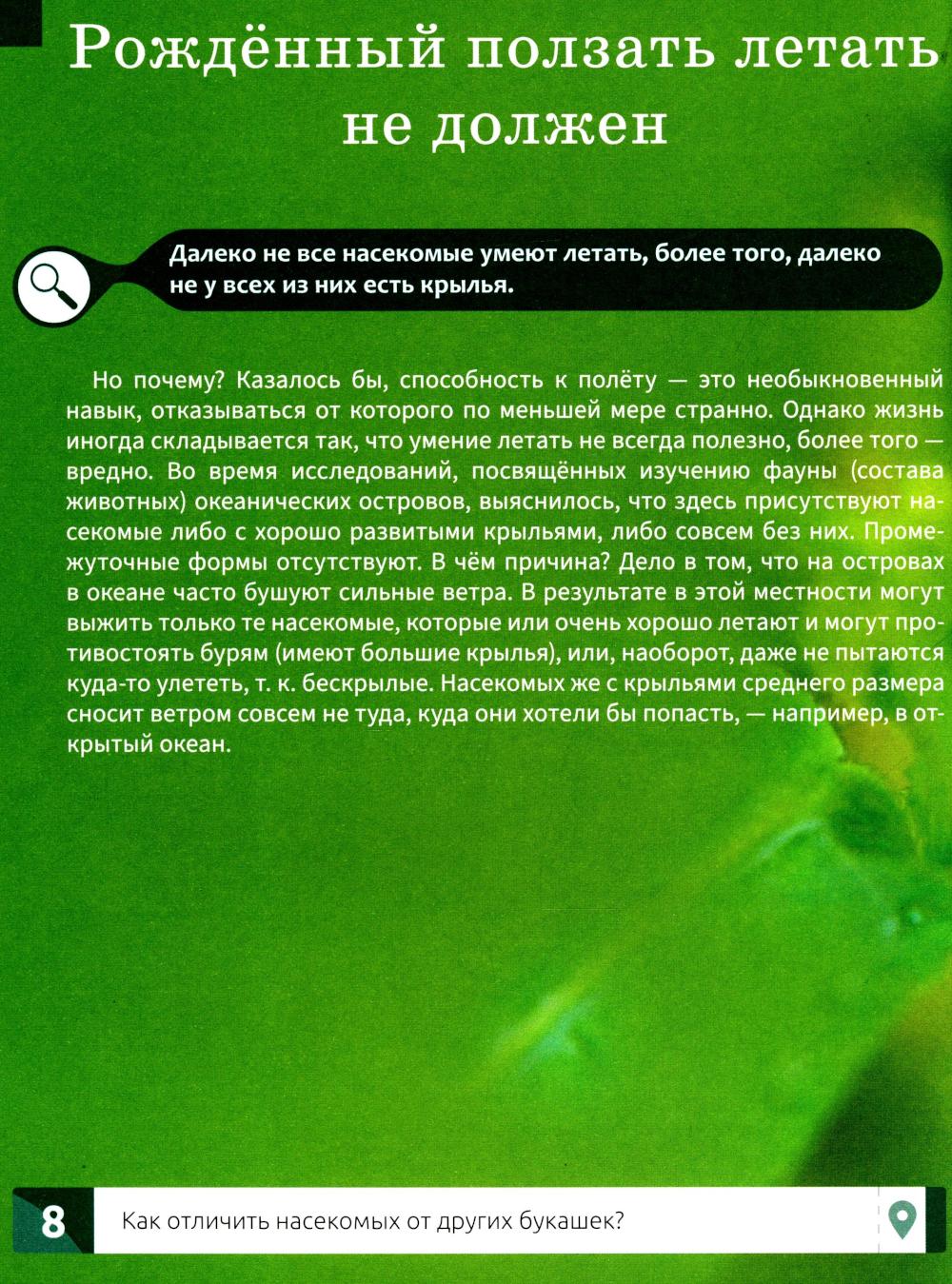 Настоящее издание будет интересно широкому кругу читателей: и детям, и взрослым. И хотя это не классический учебник, а научно-популярная книга, некоторые отсылки к научным исследованиям, опытам и различным законам (физическим, химическим и, конечно же, биологическим) в ней встречаются, чтобы нагляднее объяснить те или иные явления. Она раскроет некоторые тайны мира насекомых, пробудит в читателе интерес к энтомологии (науке о насекомых) и к естествознанию в целом, а также поможет подготовиться к различным экзаменам и контрольным, поскольку многие описанные здесь закономерности рассматриваются и в школьной программе по биологии, но часто под другим углом. Приятного путешествия в мир насекомых!| Издательство | Феникс |