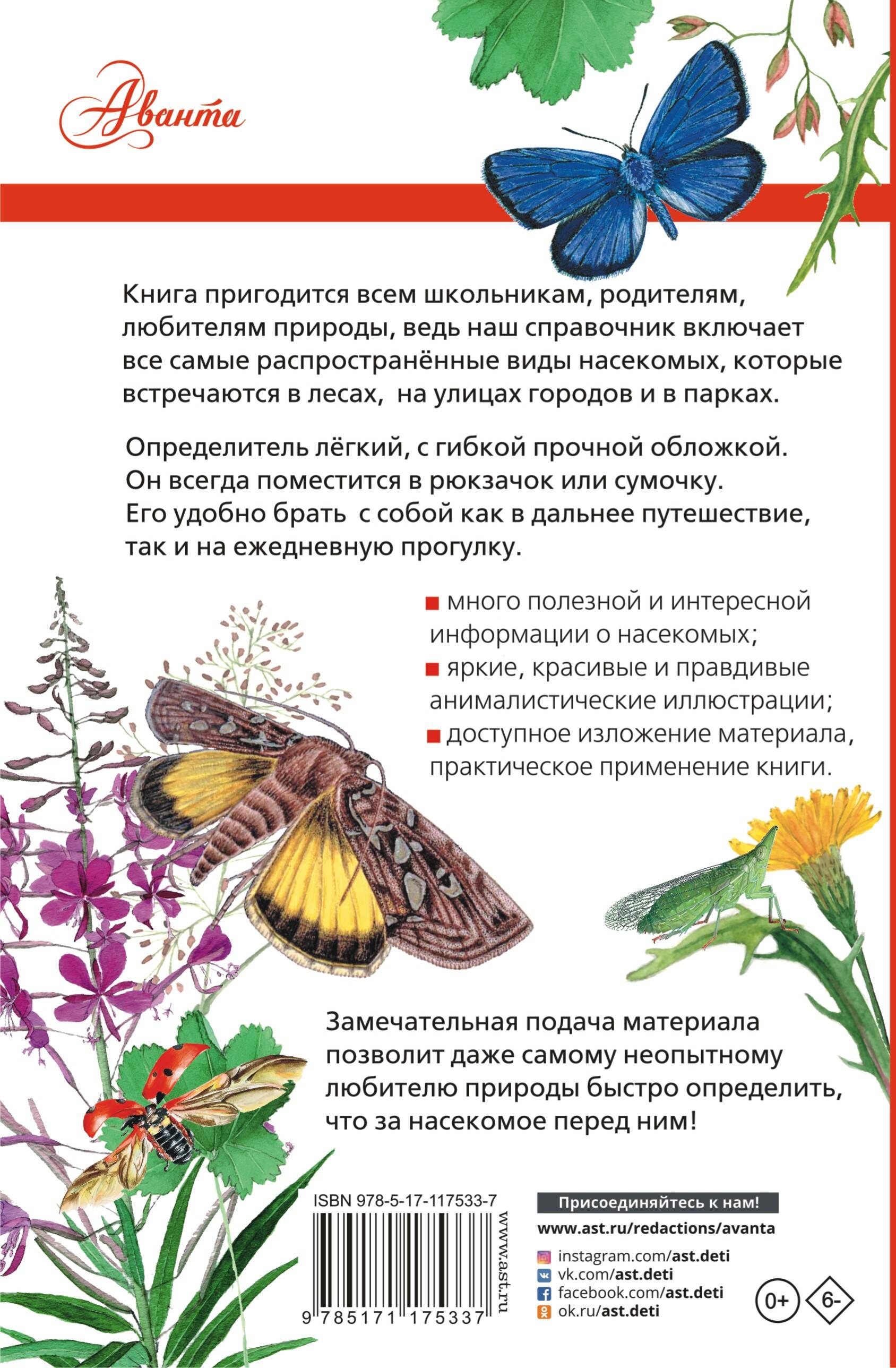 Полезное издание, практический справочник. Рекомендуется для учащихся, родителей дошкольников, проводящих со своими детьми время в садах и парках городов и на дачах в пригородах, туристам, походникам, всем любителям родной природы. Справочник укажет, на какие особенности в первую очередь стоит обратить внимание, по каким признакам отличить один вид от другого, когда и где можно встретить то или иное насекомое.