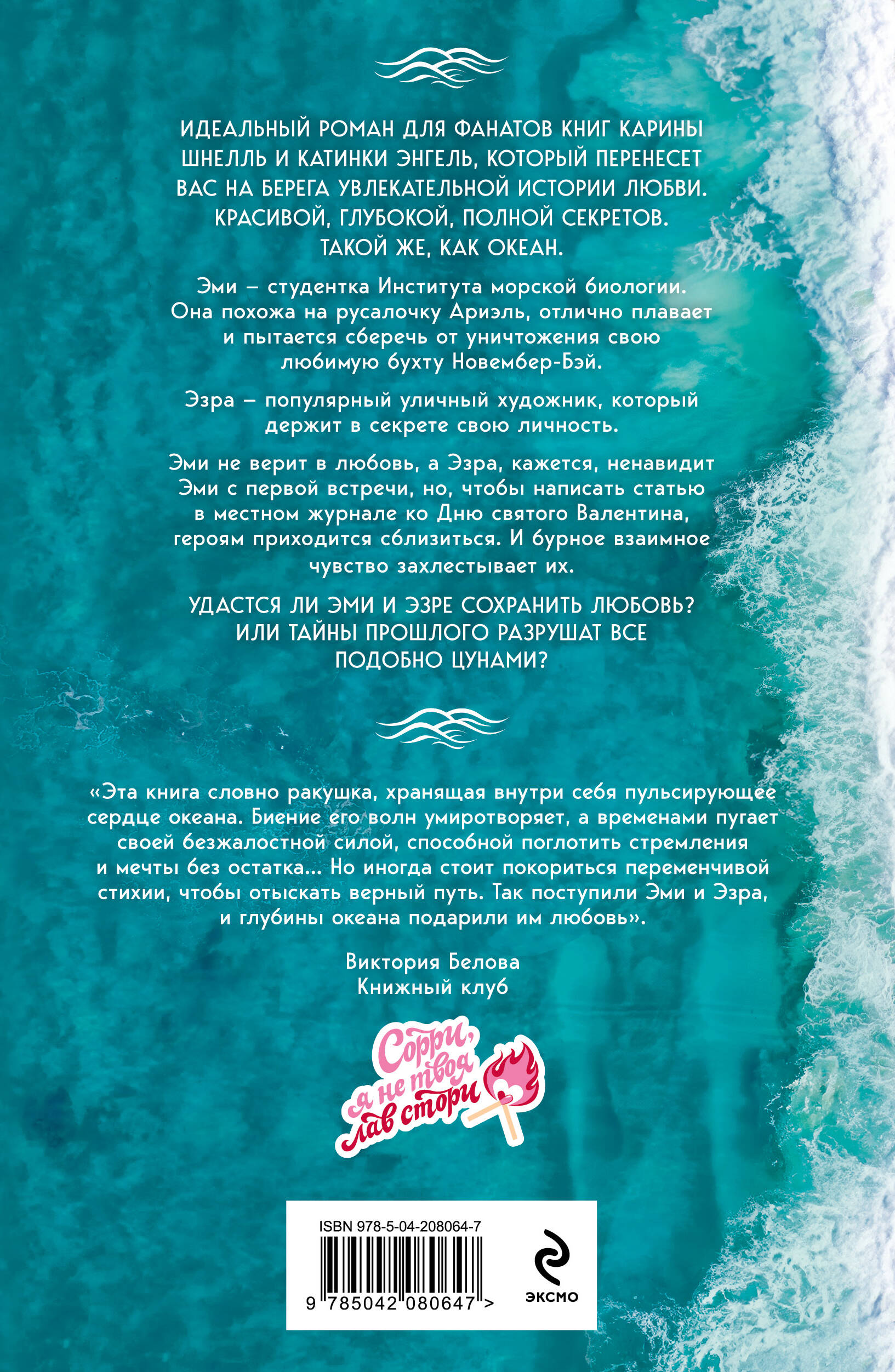 Идеальный роман для фанатов книг Карины Шнелль и Катинки Энгель, который перенесет вас на берега увлекательной истории любви. Красивой, глубокой, полной секретов. Такой же, как океан. Новинка в серии «Стихии любви», в которой выходят покеты большого формата с цветным обрезом и сияющей фольгой. Отличный подарок для любителей качественных современных романов, которые хочется поставить в свой книжный шкаф на самое видное место. Эми - студентка Института морской биологии. Она похожа на русалочку Ариэль, отлично плавает и пытается сберечь от уничтожения свою любимую бухту Новембер-Бэй. Эзра - популярный уличный художник, который держит в секрете свою личность. Эми не верит в любовь, а Эзра, кажется, ненавидит ее с первой встречи, но, чтобы написать статью в местном журнале ко Дню святого Валентина, героем приходится сблизиться. И бурное взаимное чувство захлестывает их. Удастся ли Эми и Эзре сохранить любовь? Или тайны прошлого разрушат все подобно цунами? «Эта книга словно ракушка, хранящая внутри себя пульсирующее сердце океана. Биение его волн умиротворяет, а временами пугает своей безжалостной силой, способной поглотить стремления и мечты без остатка... Но иногда стоит покориться переменчивой стихии, чтобы отыскать верный путь. Так поступили Эми и Эзра, и глубины океана подарили им любовь». - Виктория Белова, книжный клуб «Сорри, я не твоя лав стори»