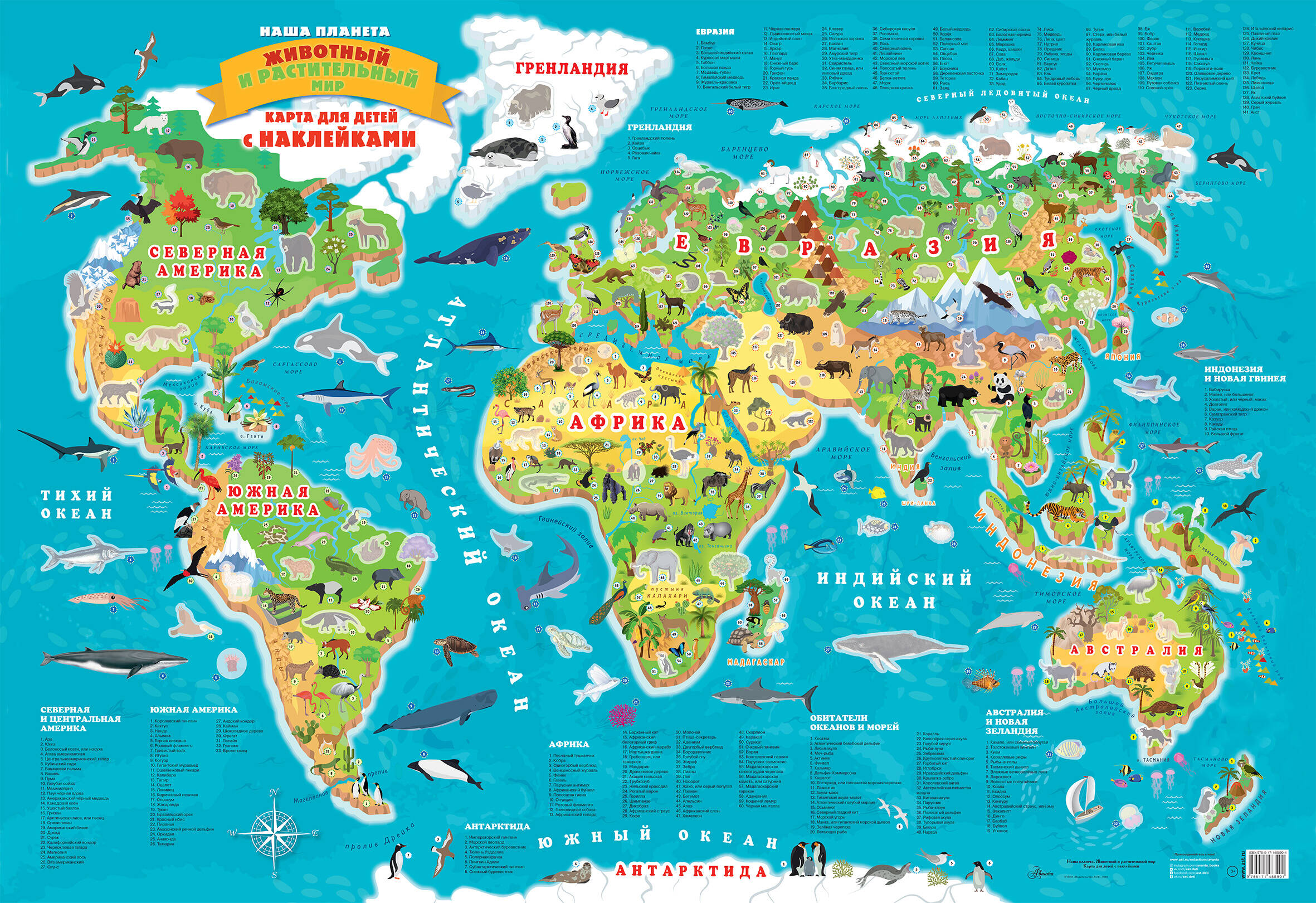 Наша планета. Животный и растительный мир. Карта для детей с наклейками