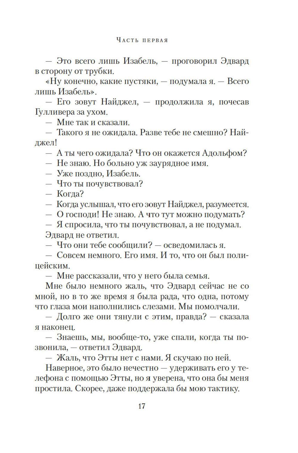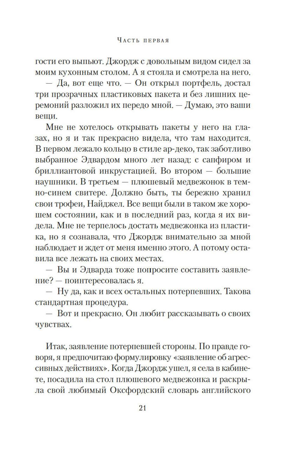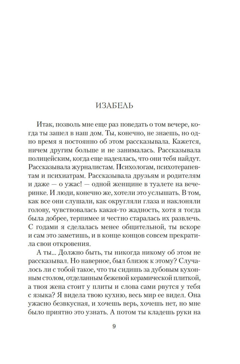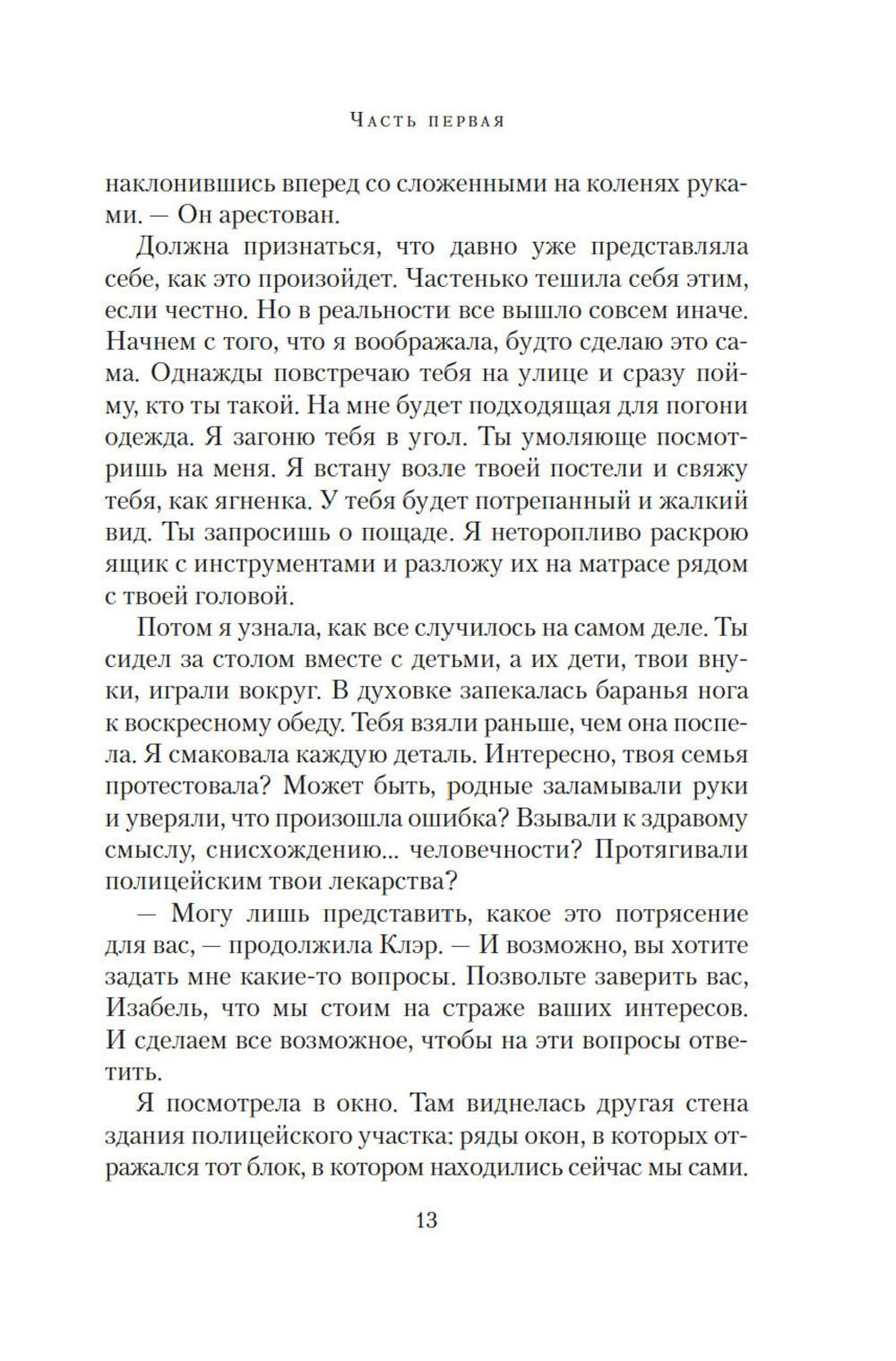 Маньяк внушал ужас всему Южному Лондону, проникая в дома к семейным парам. Спокойный сон стал роскошью. От каждой тени у двери, от каждой скрипнувшей половицы ладони покрывались липким потом: а вдруг сегодня наш черед? И однажды пришел черед Изабель и Эдварда. Обоим повезло: они остались живы. Но то, что связывало их, умерло. ЭТО ИСТОРИЯ О МОЛЧАНИИ Ту ночь они почти не обсуждают, но оба знают: тогда их брак дал трещину. Стыд, вина, невысказанные обиды и недомолвки превратили трещину в зияющую пропасть. Но вот преступник пойман, близится суд. Решатся ли Изабель и Эдвард открыто говорить о нападении перед столькими людьми, а главное - друг перед другом? ЭТО ИСТОРИЯ О ЛЮБВИ Готовясь выступить в суде, Изабель составляет подробные показания. И постепенно сквозь повествование, проникнутое ужасом и болью, проступает совсем другая история - история неидеальной, но подлинной любви, история жизни, полной ошибок, но стоящей каждого дня...| Издательство | Азбука |