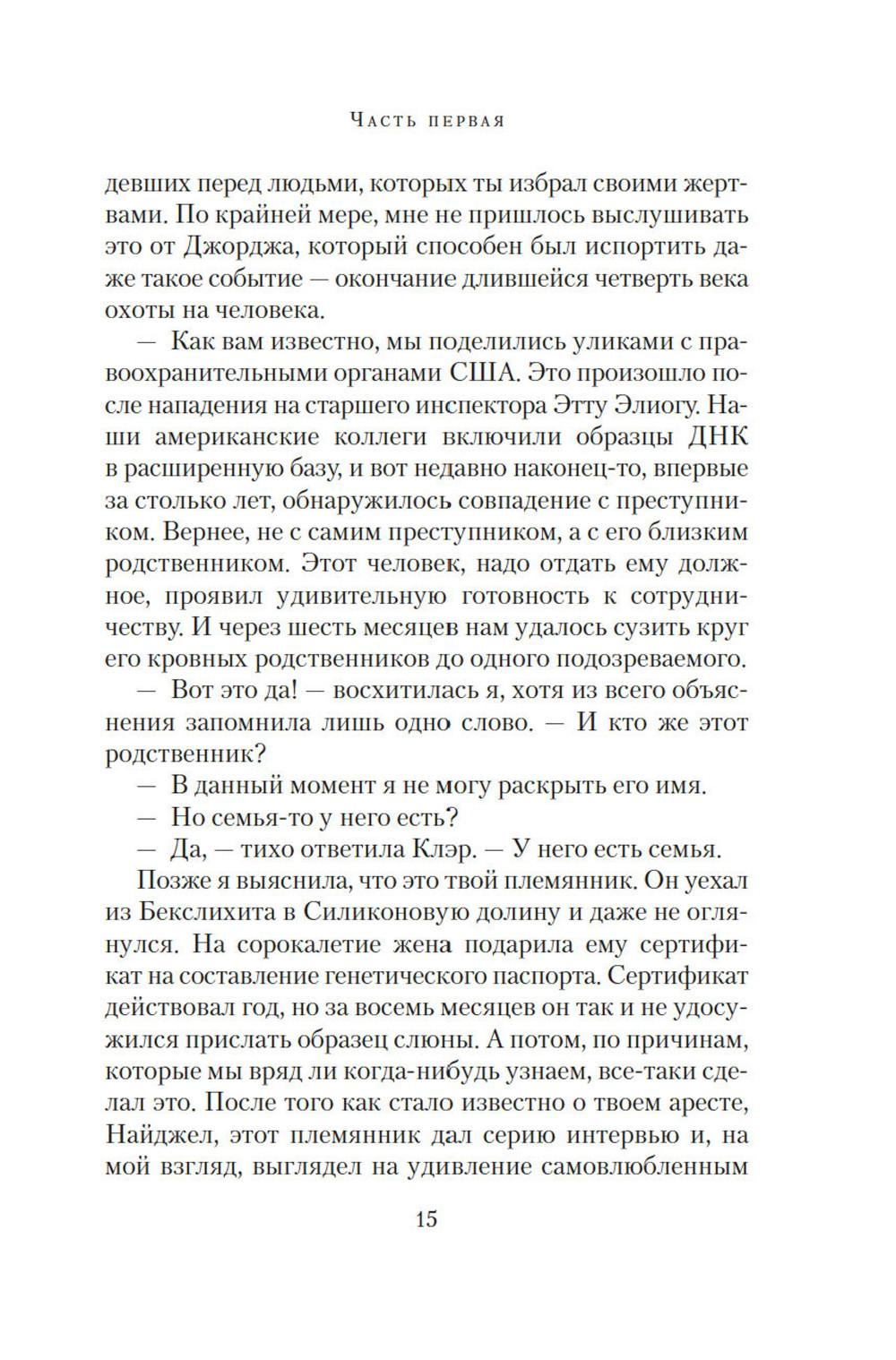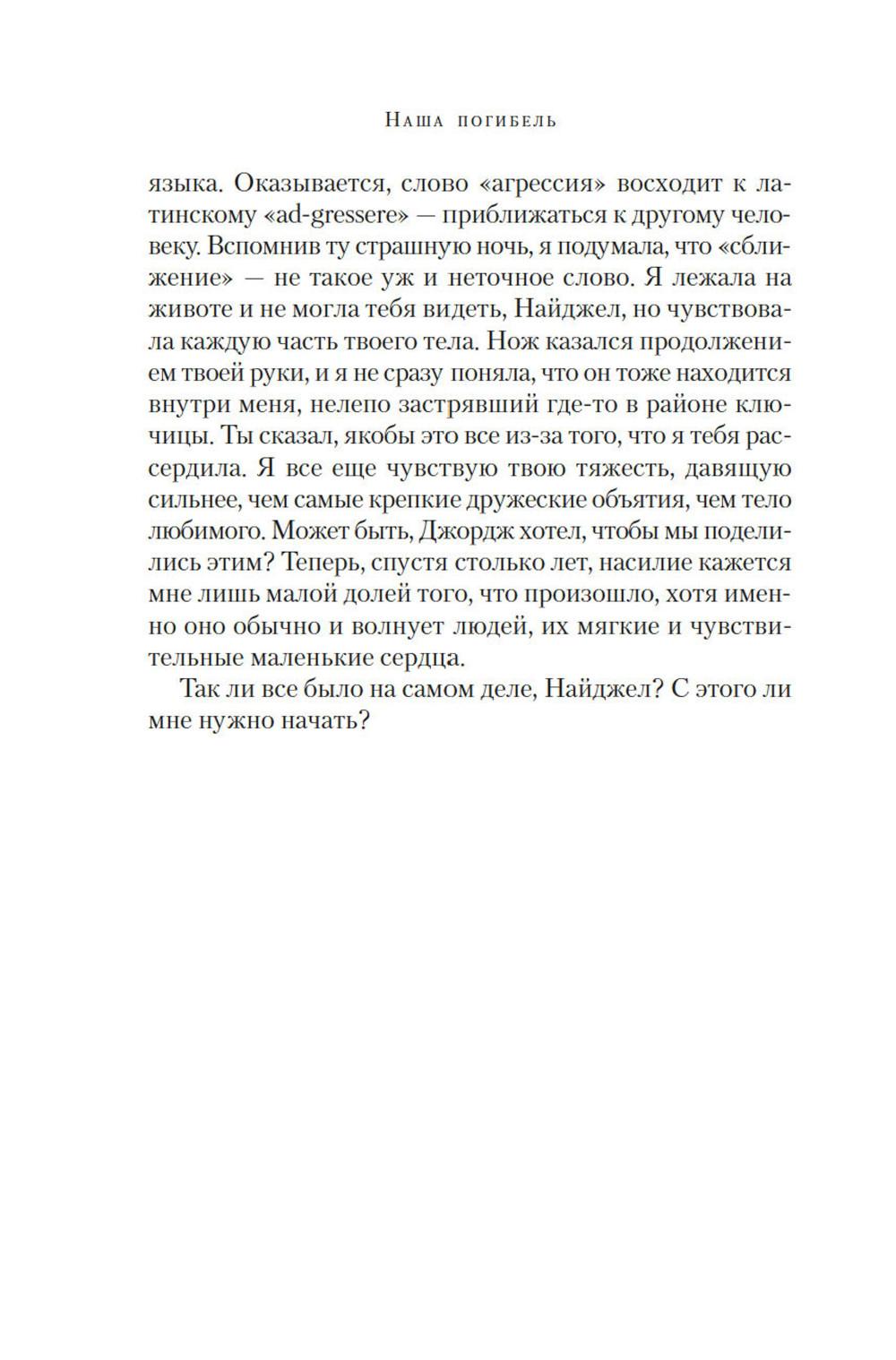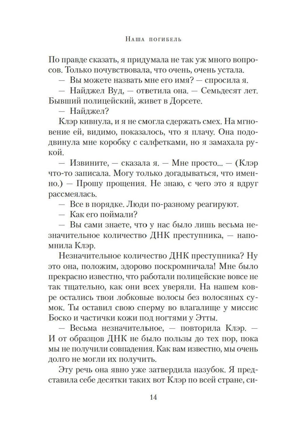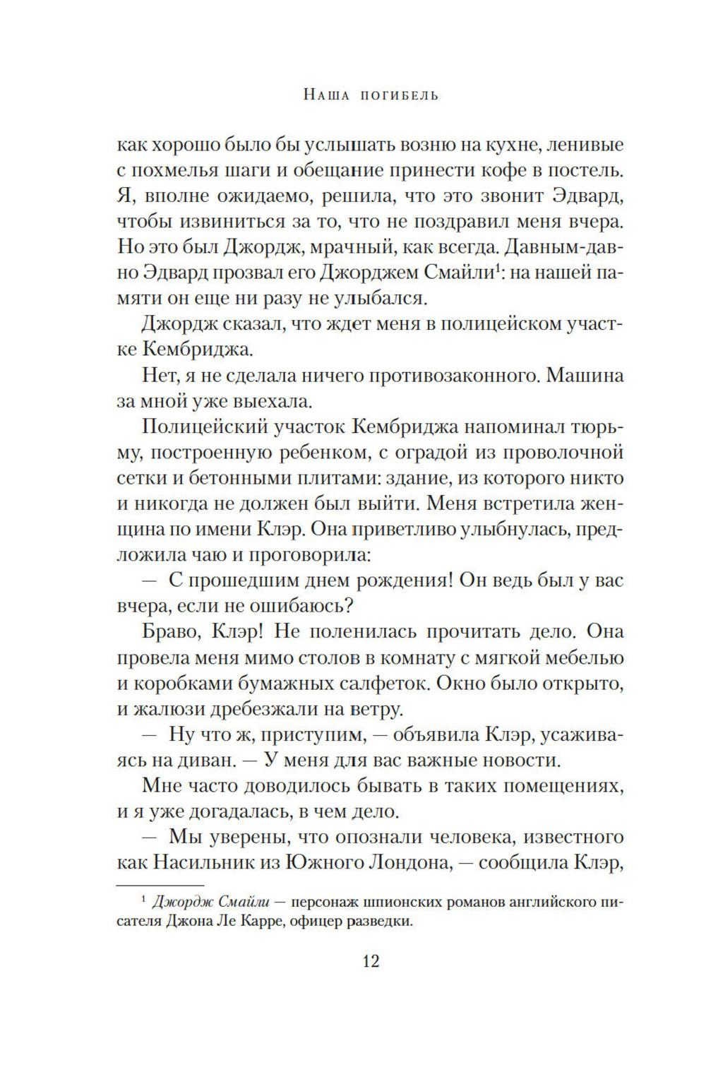 Маньяк внушал ужас всему Южному Лондону, проникая в дома к семейным парам. Спокойный сон стал роскошью. От каждой тени у двери, от каждой скрипнувшей половицы ладони покрывались липким потом: а вдруг сегодня наш черед? И однажды пришел черед Изабель и Эдварда. Обоим повезло: они остались живы. Но то, что связывало их, умерло. ЭТО ИСТОРИЯ О МОЛЧАНИИ Ту ночь они почти не обсуждают, но оба знают: тогда их брак дал трещину. Стыд, вина, невысказанные обиды и недомолвки превратили трещину в зияющую пропасть. Но вот преступник пойман, близится суд. Решатся ли Изабель и Эдвард открыто говорить о нападении перед столькими людьми, а главное - друг перед другом? ЭТО ИСТОРИЯ О ЛЮБВИ Готовясь выступить в суде, Изабель составляет подробные показания. И постепенно сквозь повествование, проникнутое ужасом и болью, проступает совсем другая история - история неидеальной, но подлинной любви, история жизни, полной ошибок, но стоящей каждого дня...| Издательство | Азбука |