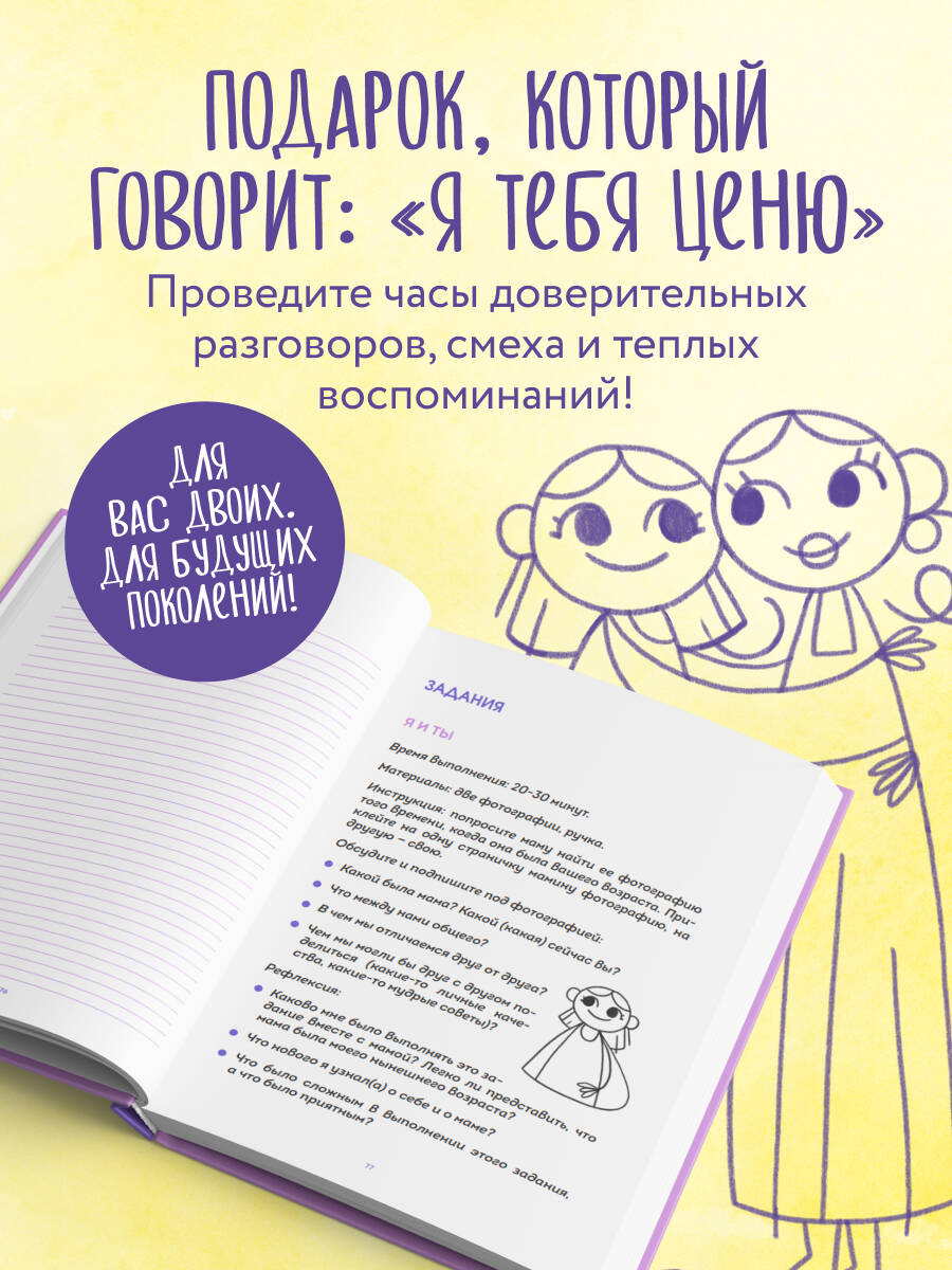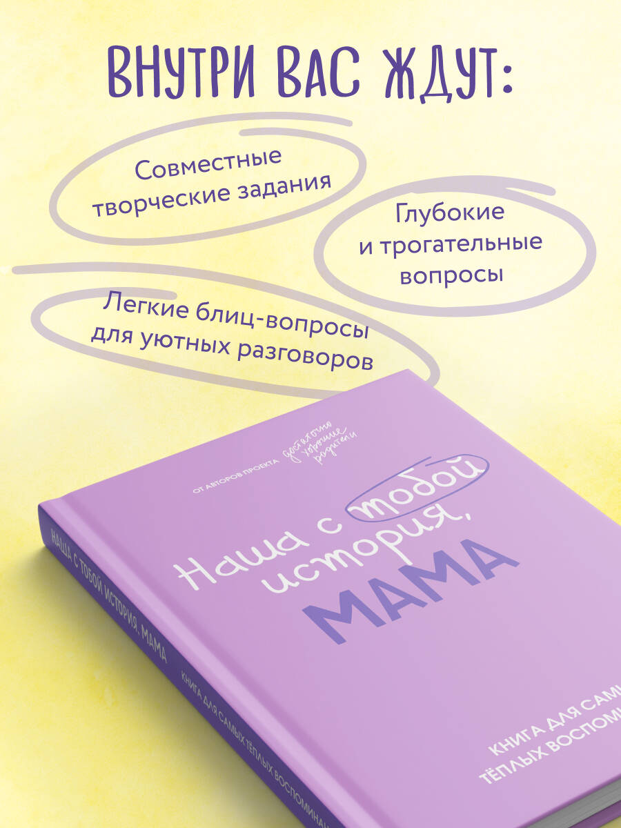 «Наша с тобой история, мама» - не просто книга, а пространство для самых тёплых воспоминаний и уникальная возможность для вас стать с мамой еще ближе. Это приглашение в личное путешествие: вспомнить, как всё было, услышать друг друга по-новому, узнать маму еще лучше и написать вашу семейную историю - вместе. Авторы книги - специалисты проекта «Достаточно хорошие родители» - сервиса с консультациями, курсами и материалами о детстве, родительстве и взрослении. Книга написана основательницей проекта Надей Шибут совместно с психологами Евлалией Просветовой и Наташей Гарист. Кому подойдёт? ✅ Для дочерей (и сыновей), которые хотят лучше понять своих мам. ✅ Для мам, готовых делиться историями и сближаться с детьми. ✅ Для всех, кто ценит семейные традиции и хочет сохранить их для будущих поколений. Что вас ждет внутри? - Глубокие, трогательные вопросы - чтобы узнать маму с новой стороны: какой она была в детстве, о чем мечтала в юности, что чувствовала, когда вы появились на свет. - Совместные творческие задания - готовьте вместе пироги из детства, слушайте старые песни, воcсоздавайте семейные фото. - Блиц-вопросы и артефакты - фиксируйте яркие воспоминания с помощью ассоциаций, фотографий и записей. - Рефлексия и благодарность - пишите письма в прошлое, отмечайте, как изменились ваши отношения. Как это работает? - Выбираете тему - детство мамы, ее юность или ваши совместные годы. - Отвечаете на вопросы - простые, трогательные, неожиданные. - Выполняете задания - вместе готовите, рисуете, вспоминаете. - Сохраняете моменты - вклеиваете фото, билеты, записки. Это больше, чем просто книга. Это ваша семейная реликвия. Подарите себе и маме часы доверительных разговоров, смеха и теплых воспоминаний. Пусть ваша история будет наполнена любовью! Сохраните самые дорогие воспоминания! Для себя и для следующих поколений!| Издательство | ООО "Издательство "Эксмо" |