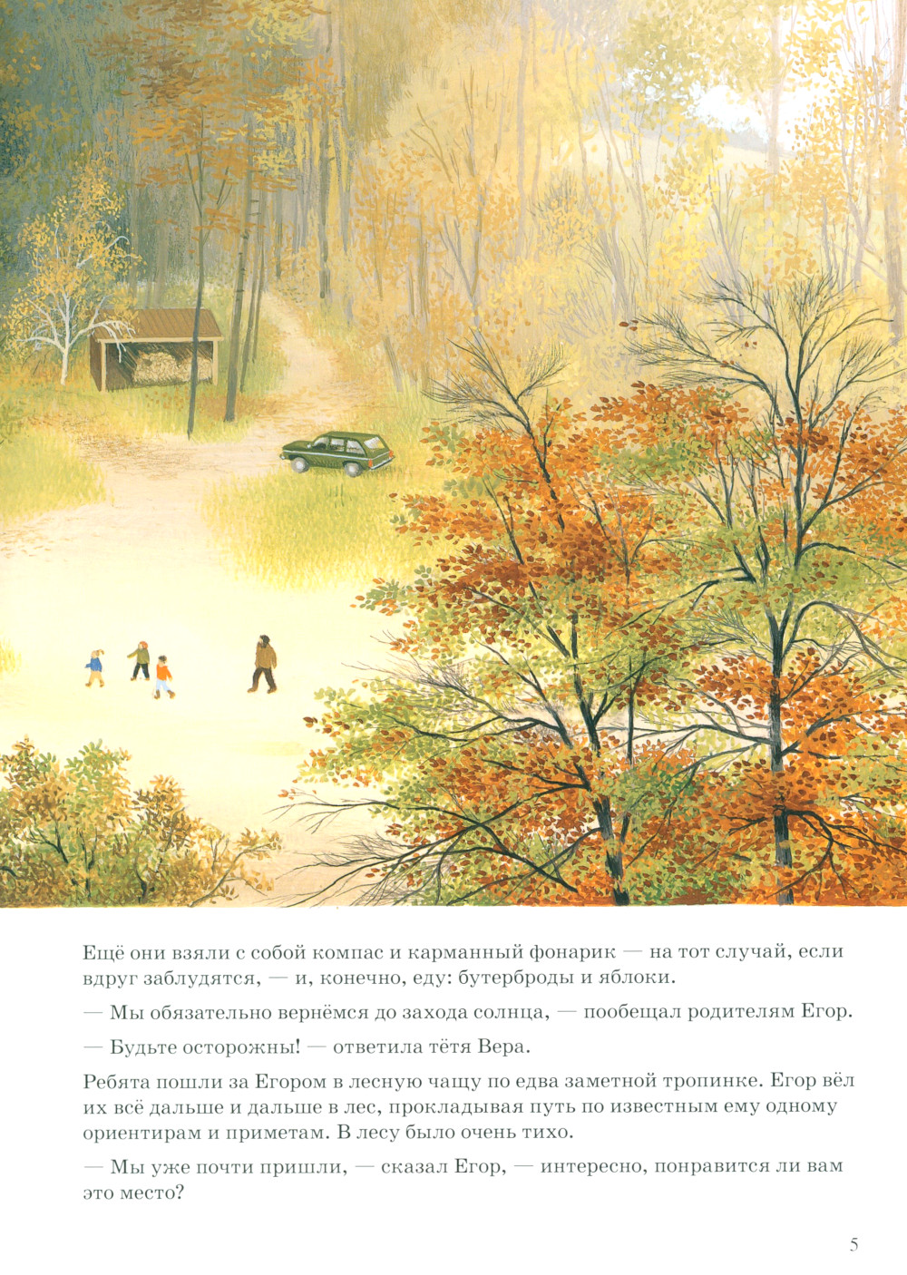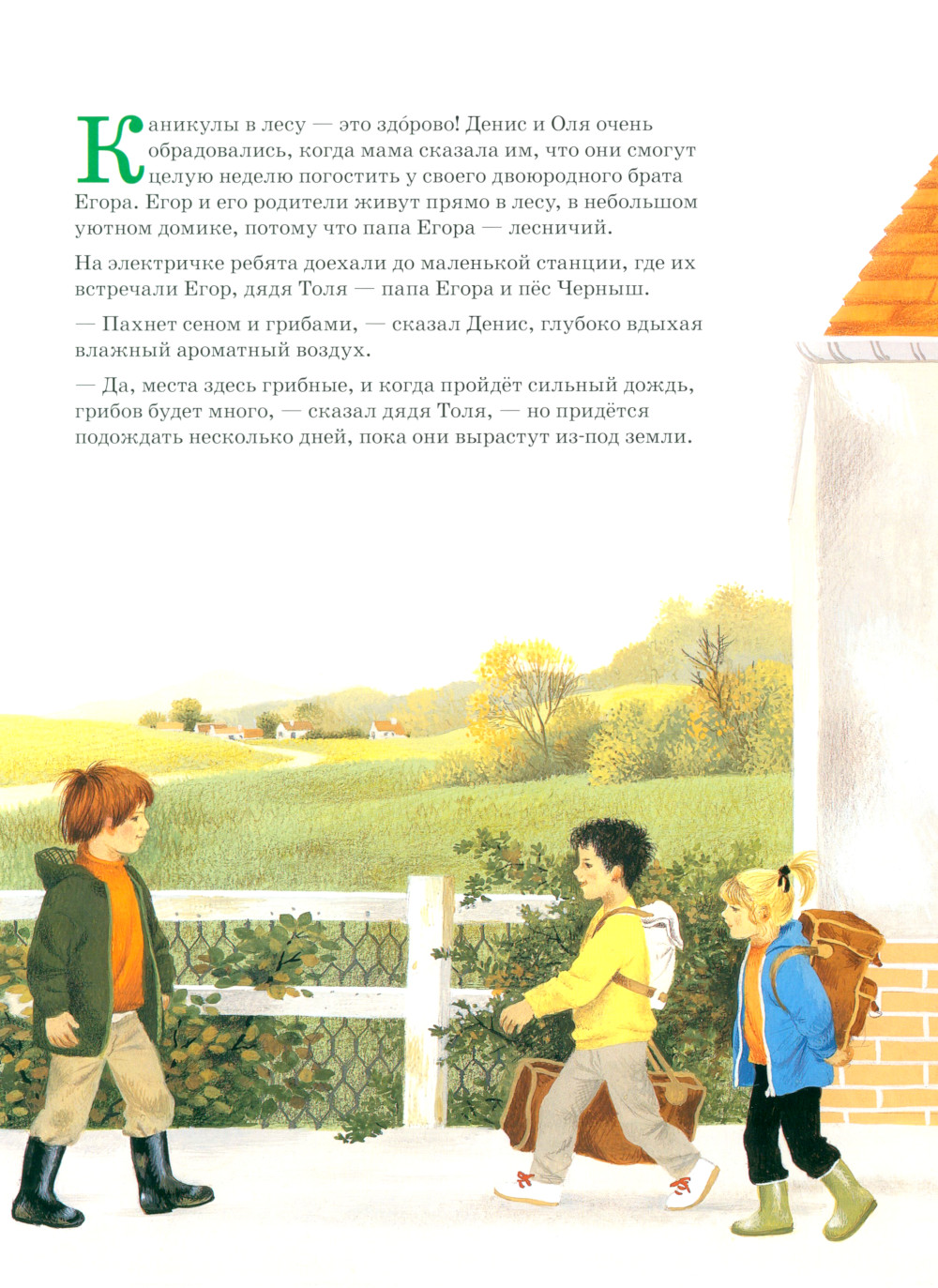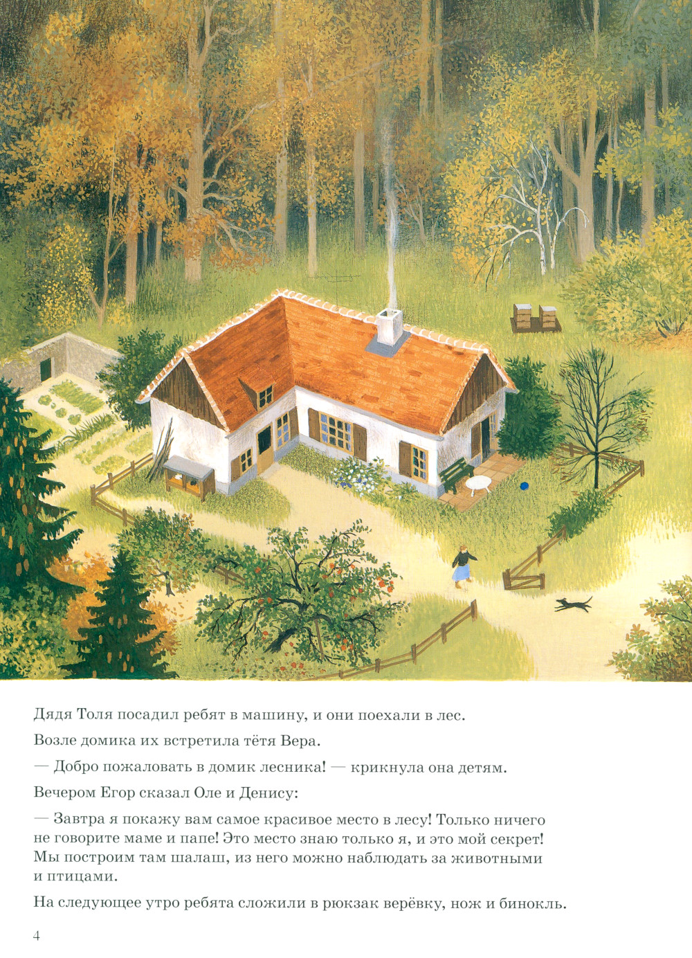 Лес - прекрасное место, где дети, выросшие в городе, могут наблюдать за жизнью диких животных и растений. Оля и Денис, герои этой истории, приехали на каникулы к двоюродному брату Егору, который живёт со своими родителями прямо в лесу, в небольшом уютном домике, потому что его папа - лесничий. Ребята узнают много интересного об обитателях леса: как растут и чем питаются деревья, как животные и растения помогают друг другу, почему дикие кабаны любят валяться в грязи и зачем белкам длинные пышные хвосты.