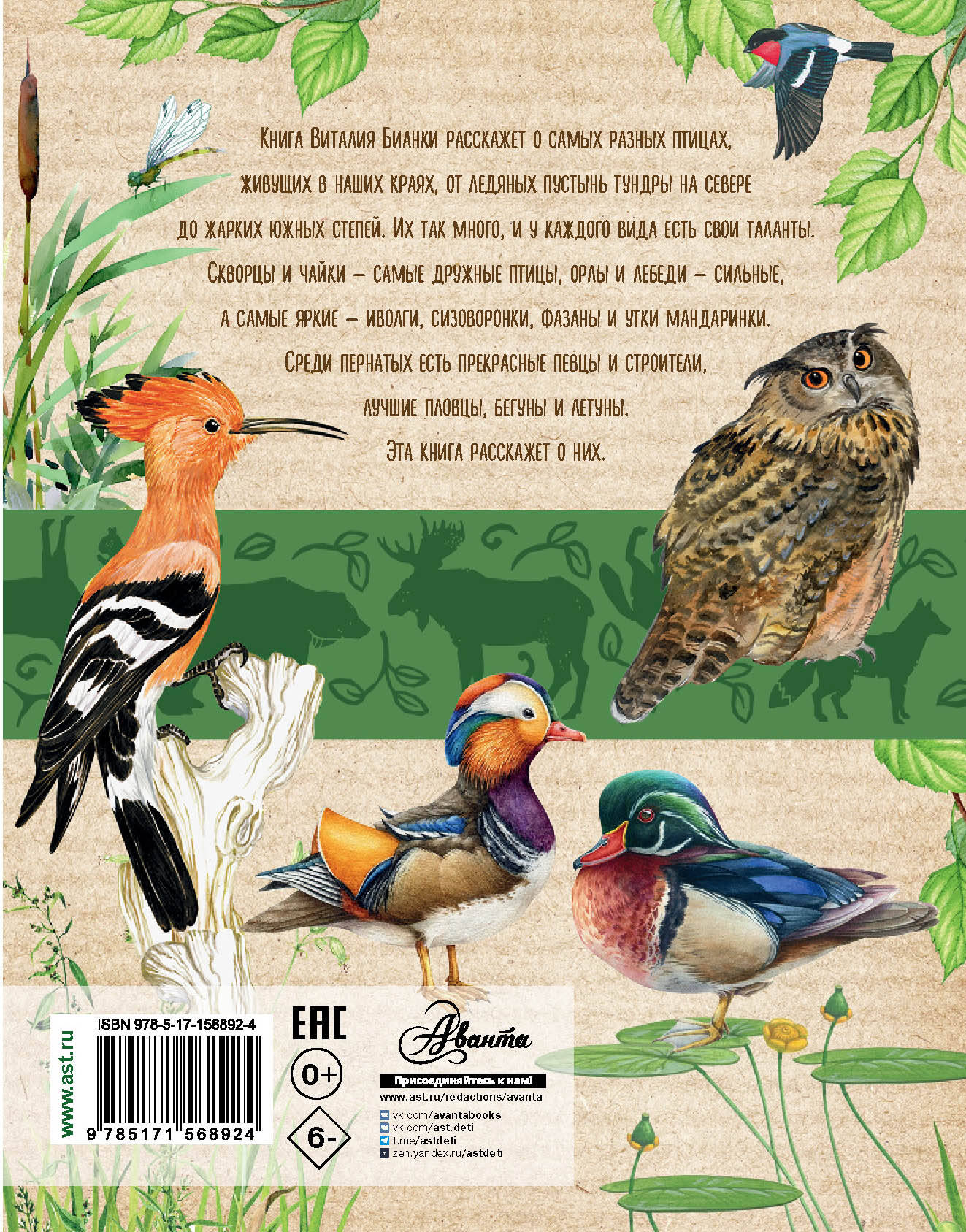 Книга Виталия Валентиновича Бианки "Наши птицы" расскажет о самых разных пернатых, живущих в наших краях, от ледяных пустынь тундры на севере до жарких южных степей, об их привычках и поведении в разное время года. Птиц так много, и у каждого вида есть свои таланты. Скворцы и чайки -самые дружные, орлы и лебеди - сильные, а самые яркие - иволги, сизоворонки, фазаны и утки мандаринки. Среди пернатых есть прекрасные певцы и строители, лучшие пловцы, бегуны и летуны. Познакомься с ними! Для младшего школьного возраста.| Издательство | ИЗДАТЕЛЬСТВО "АСТ" |