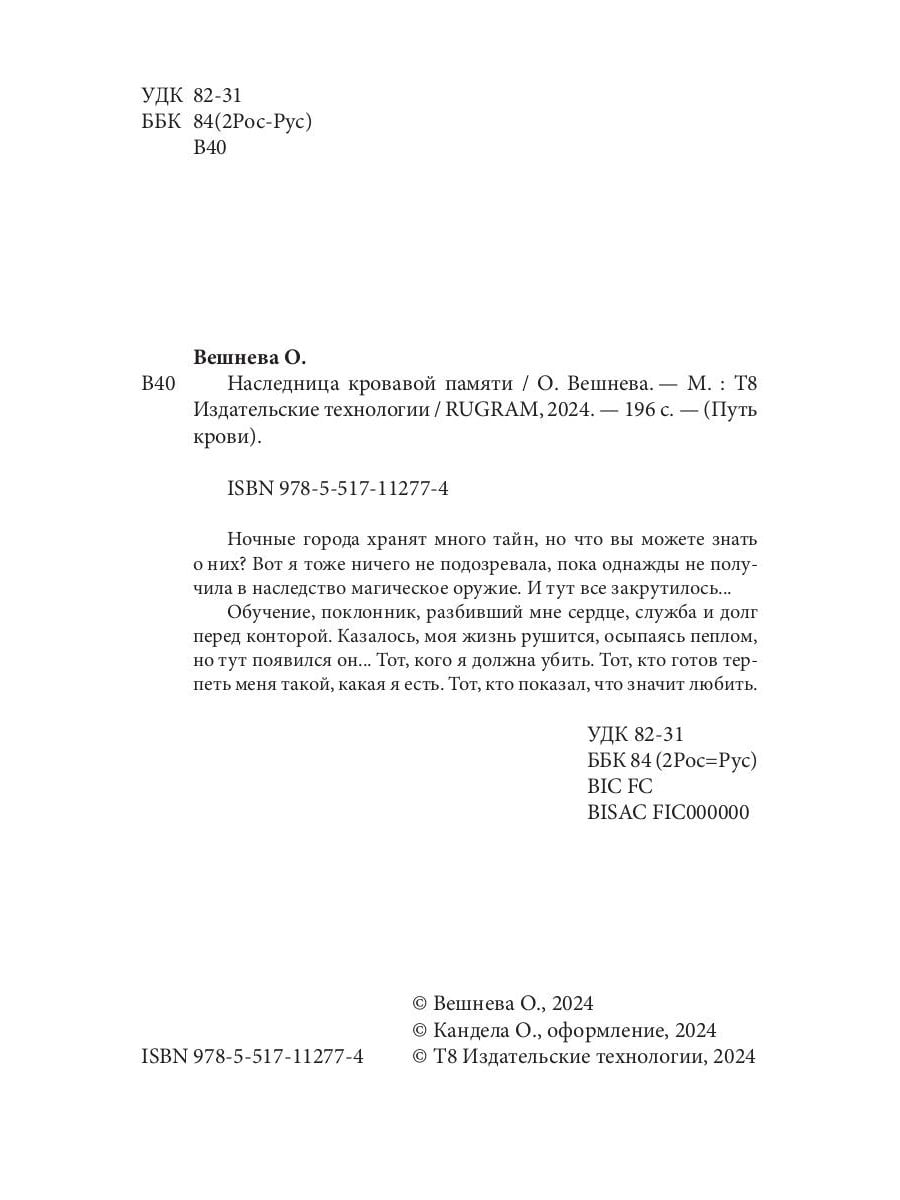 Ночные города хранят много тайн, но что вы можете знать о них? Вот я тоже ничего не подозревала, пока однажды не получила в наследство магическое оружие. И тут все закрутилось... Обучение, поклонник, разбивший мне сердце, служба и долг перед конторой. Казалось, моя жизнь рушится, осыпаясь пеплом, но тут появился он... Тот, кого я должна убить. Тот, кто готов терпеть меня такой, какая я есть. Тот, кто показал, что значит любить.| Издательство | Т8 RUGRAM |