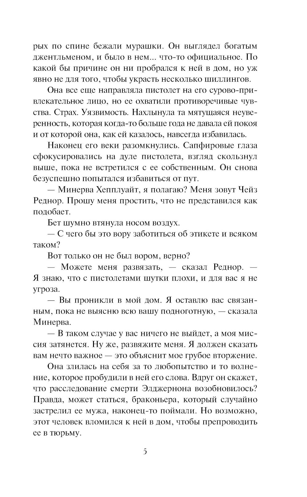 Минерва Хепплуайт - леди, способная о себе позаботиться. Например, обнаружить, что в дом ее вломились, стукнуть грабителя по голове, связать... и с изумлением узнать в нем не преступника, а детектива Чейза Реднора. Этот человек заявляет, что она унаследовала огромное состояние от некоего герцога, погибшего при загадочных обстоятельствах, и что она одна из подозреваемых в убийстве... Минерва и Чейз принимаются за расследование вместе. Но к опасным и забавным приключениям неожиданно примешивается любовь. Любовь, которой наплевать, что они не переносят друг друга...| Издательство | АСТ |