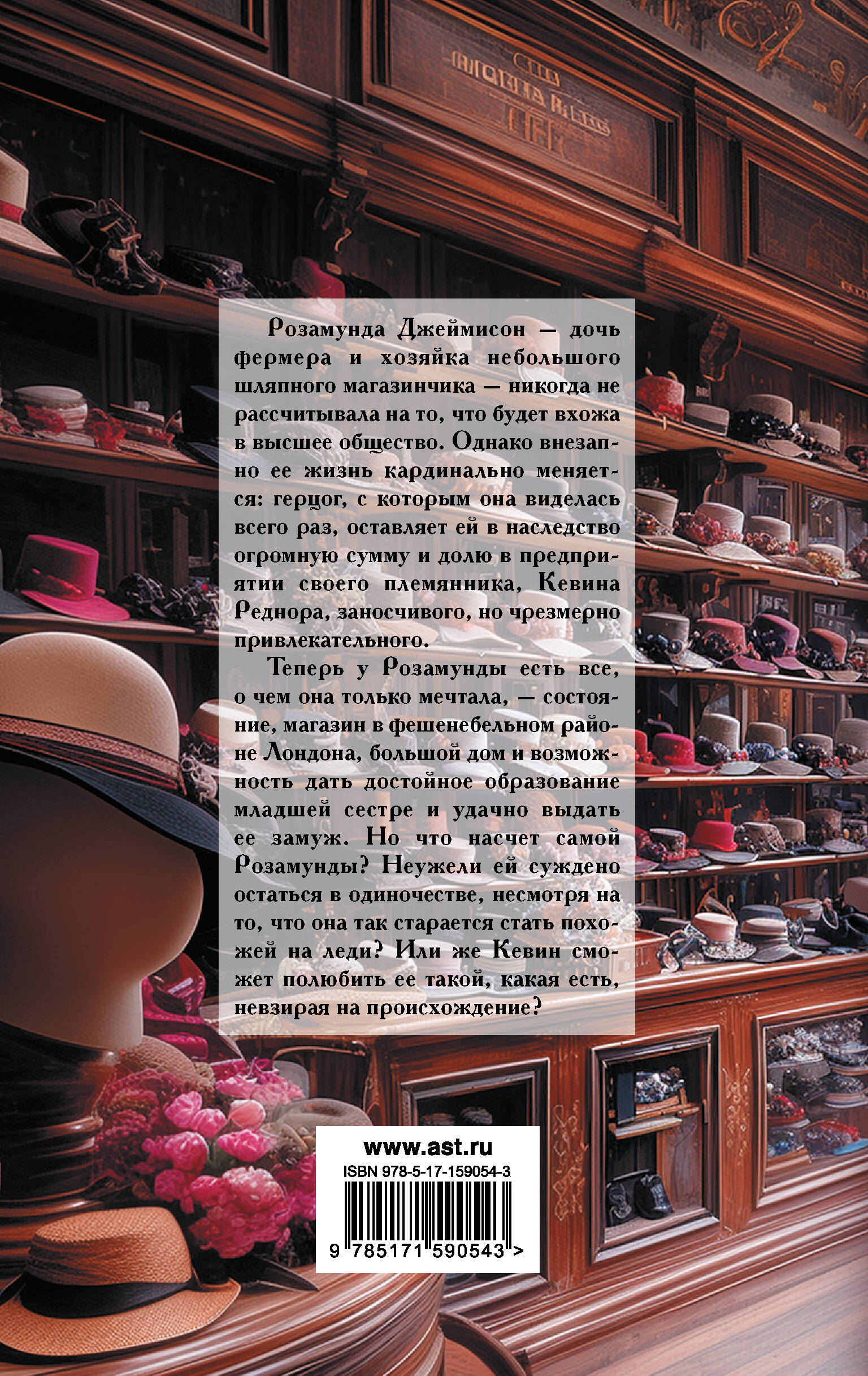 Розамунда Джеймисон - дочь фермера и хозяйка небольшого шляпного магазинчика - никогда не рассчитывала на то, что будет вхожа в высшее общество. Однако внезапно ее жизнь кардинально меняется: герцог, с которым она виделась всего раз, оставляет ей в наследство огромную сумму и долю в предприятии своего племянника, Кевина Реднора, заносчивого, но чрезмерно привлекательного. Теперь у Розамунды есть все, о чем она только мечтала, - состояние, магазин в фешенебельном районе Лондона, большой дом и возможность дать достойное образование младшей сестре и удачно выдать ее замуж. Но что насчет самой Розамунды? Неужели ей суждено остаться в одиночестве, несмотря на то, что она так старается стать похожей на леди? Или же Кевин сможет полюбить ее такой, какая есть, невзирая на происхождение?| Издательство | Издательство "АСТ" |
