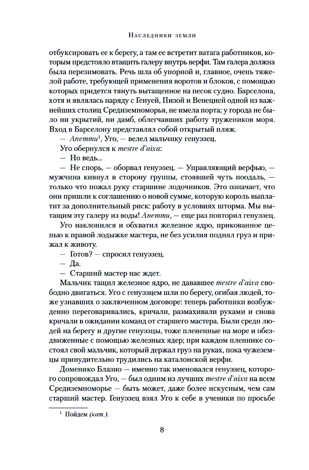 Спустя десять лет после событий величественной саги Ильдефонсо Фальконеса "Собор у моря" мы возвращаемся в средневековую Барселону, где главный герой "Собора" Арнау Эстаньол - немолодой и уважаемый гражданин, а семейство Пуч, его давние враги, повержены. Однако эта благостная картина рассыпается в прах на глазах юного протеже Эстаньола, мальчика по имени Уго Льор, который, успев затвердить самый главный совет своего наставника не склоняться ни перед кем, в двенадцать лет нежданно обзаводится очень влиятельными врагами. Его мечте строить корабли не суждено сбыться, однако друзья Эстаньола открывают мальчику виноделие; со временем Уго становится уважаемым виноградарем и виночерпием - а также верным другом жестокого корсара, шпионом короля и освободителем рабов.