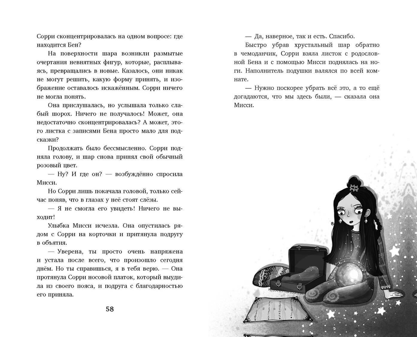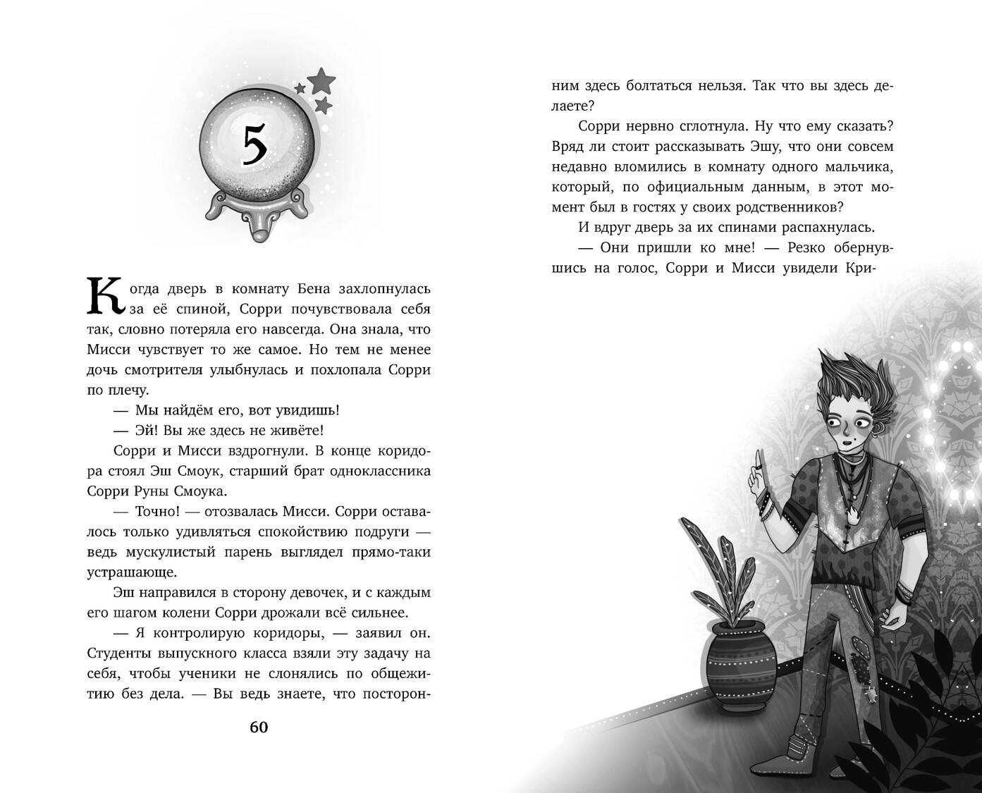 Вторая часть серии о школе прорицателей! Фэнтези для детей в неожиданном сеттинге! Сорри пророчица. Но у нее слабый дар, будущее она может видеть вперед на пару минут, как и прошлое. Когда пропадает ее друг Бен, Сорри ясно видит, что его уводит мужчина, которого мальчик называет отцом. Только Бен всегда говорил, что он сирота, который сбежал от жестокого опекуна! Сорри отправляется на поиски Бена. Но чем дальше заходит ее расследование, тем больше девочка запутывается. Удастся ли Сорри найти правду? Сара М. Кемпен - популярная немецкая писательница, имеющая несколько литературных наград. Ее книги для детей отличаются тонким психологизмом, в них перед жителями волшебных миров встают те же проблемы, что и перед реальными читателями. Интригующая обложка, черно-белые иллюстрации, увлекательная история - здесь есть все для хорошего времяпрепровождения.| Издательство | ООО "Издательство "Эксмо" |
