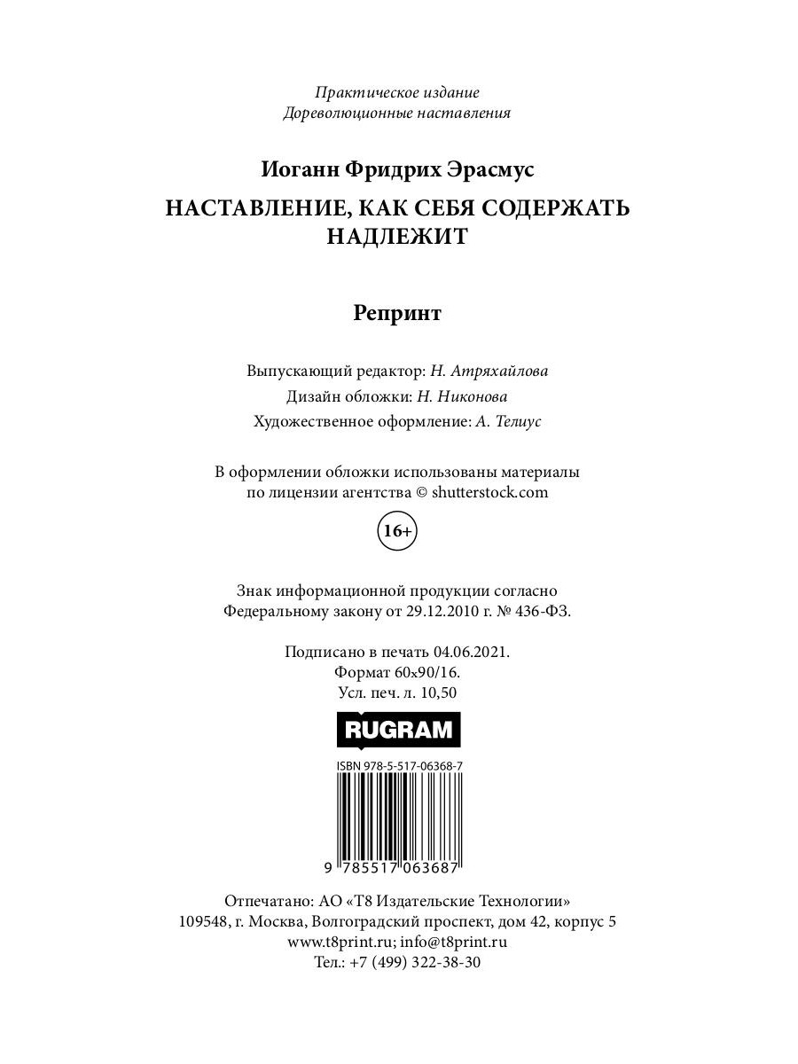 Аннотация: Наставление, как себя содержать надлежит (репринтное изд.)