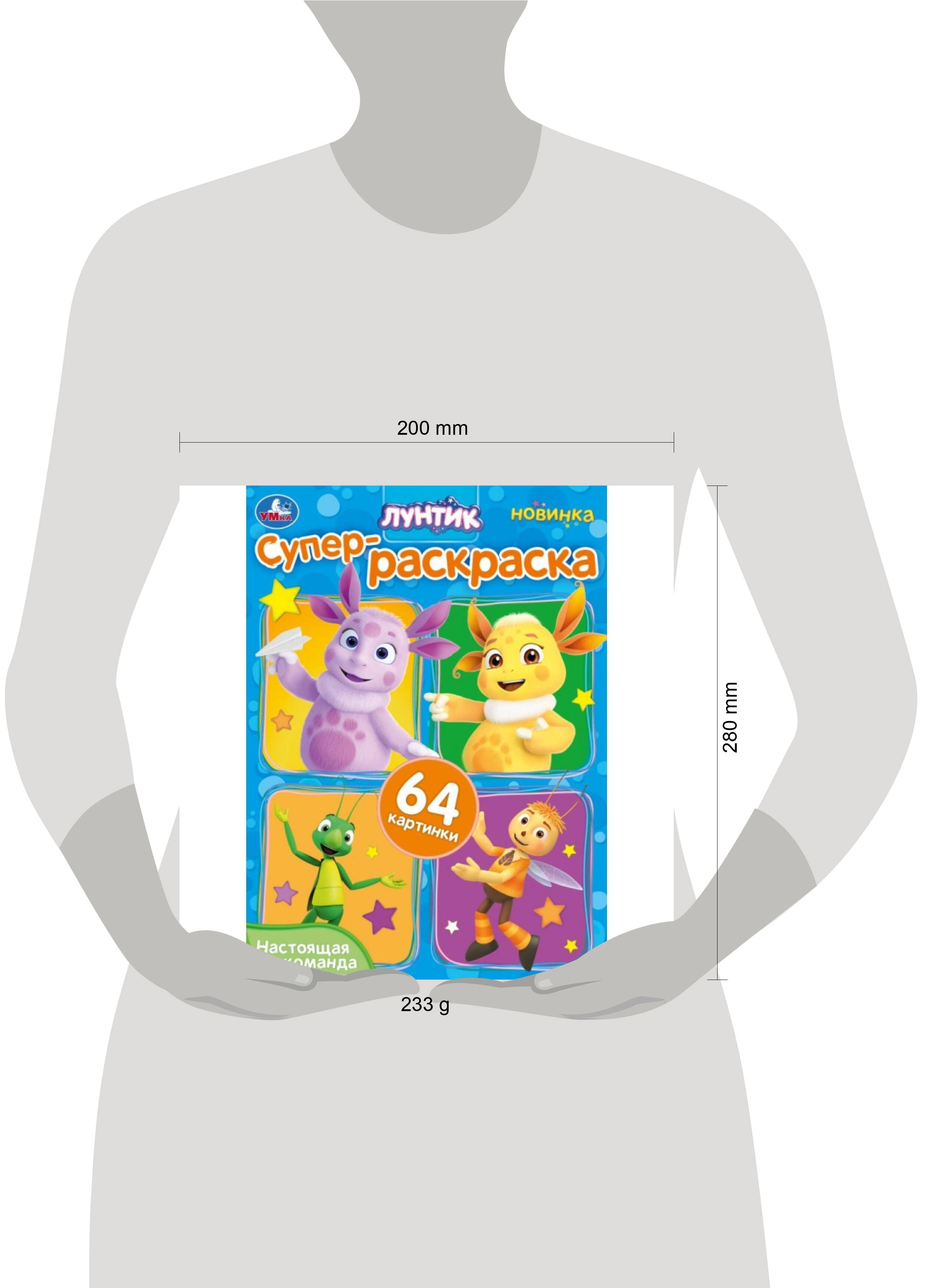 Аннотация: Настоящая команда. Лунтик. Супер-раскраска 64 картинки. 210х280 мм. Скрепка. 64 стр. Умка в кор.30шт