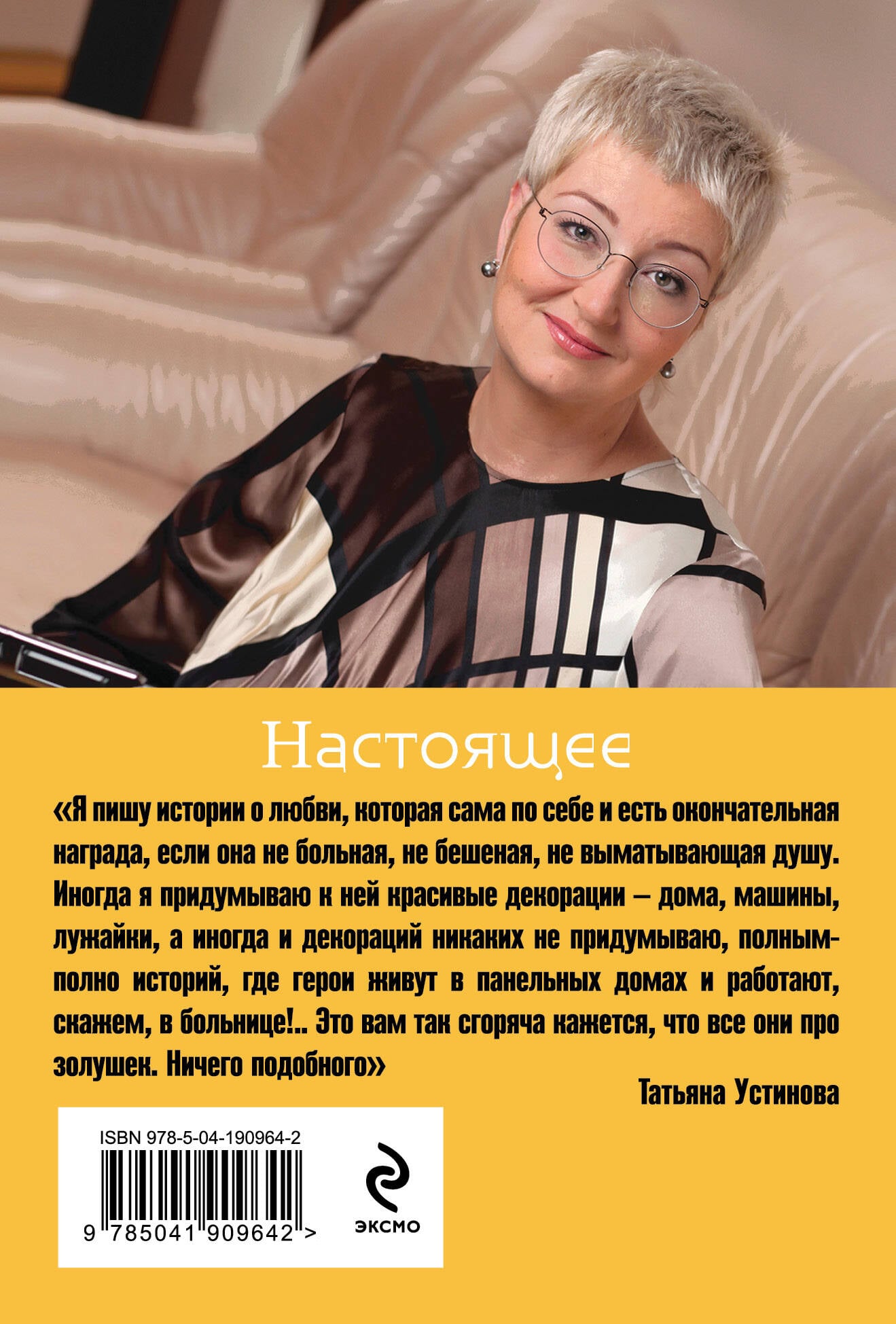 «Я пишу истории о любви, которая сама по себе и есть окончательная награда, если она не больная, не бешеная, не выматывающая душу. Иногда я придумываю к ней красивые декорации - дома, машины, лужайки, а иногда и декораций никаких не придумываю, полным-полно историй, где герои живут в панельных домах и работают, скажем, в больнице!.. Это вам так сгоряча кажется, что все они про золушек. Ничего подобного». - Татьяна Устинова Татьяна Устинова - один из топовых авторов современной российской прозы, обладатель двух премий «Электронная буква», лауреат «ТЭФИ» в номинации «Сценарист телевизионного фильма». «Первая среди лучших» - так называют Татьяну Витальевну, и это не просто остроумный эпитет, а звание, подтвержденное десятками написанных романов, успешными экранизациями и, конечно, любовью многочисленных поклонников ее творчества.| Издательство | ООО "Издательство "Эксмо" |
