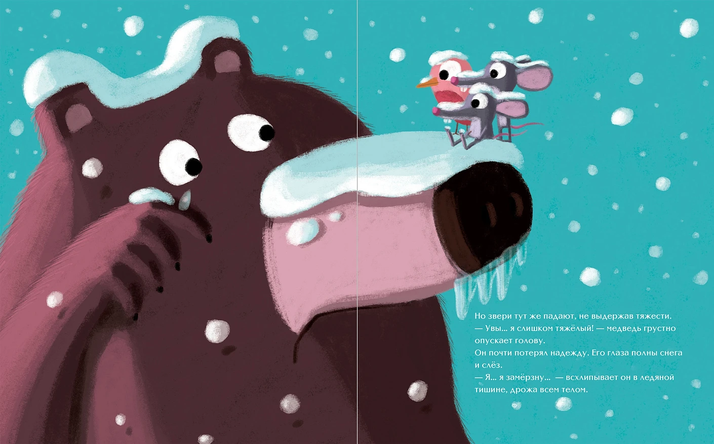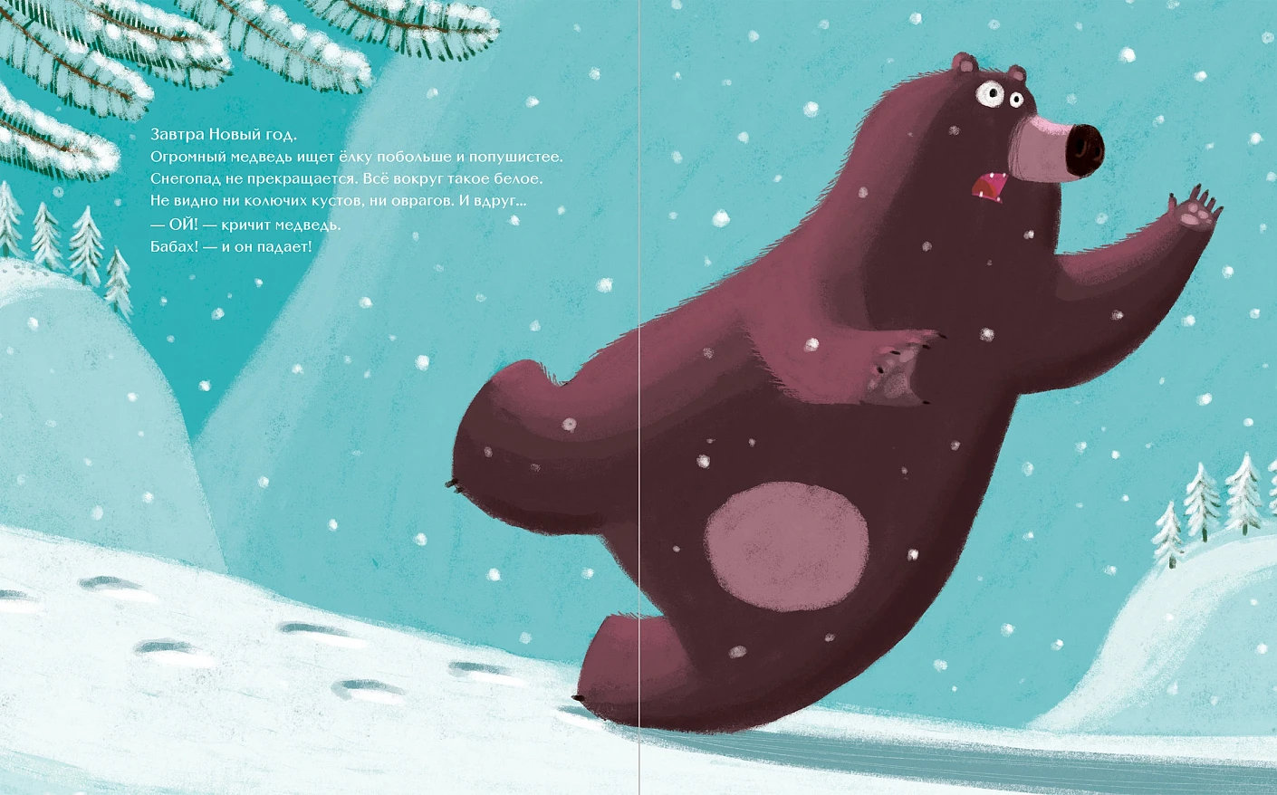 Совсем скоро Новый год! Медведь мечтает о пушистой ёлке, но... БАХ! - и он падает в сугроб, а выбраться сам не может. На помощь спешат друзья, но снегопад такой сильный, что едва видны носы! Смогут ли звери помочь медведю встретить настоящий Новый год?