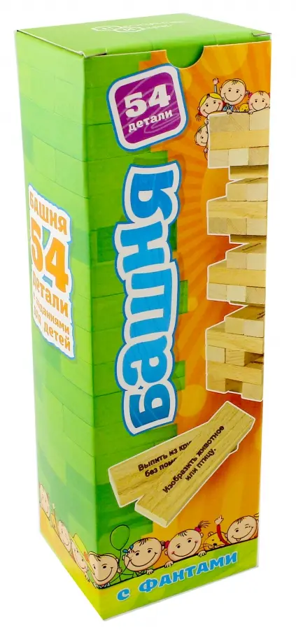 Настольная игра "Башня с заданиями для детей" - увлекательная настольная игра, в которую можно играть всей семьей или с дружной веселой компанией. Принцип игры прост: из ровных деревянных брусков строится башня (каждый новый «этаж» делается с чередованием направления укладки), а затем игроки начинают аккуратно вытаскивать по одному бруску и ставить его на верх башни.