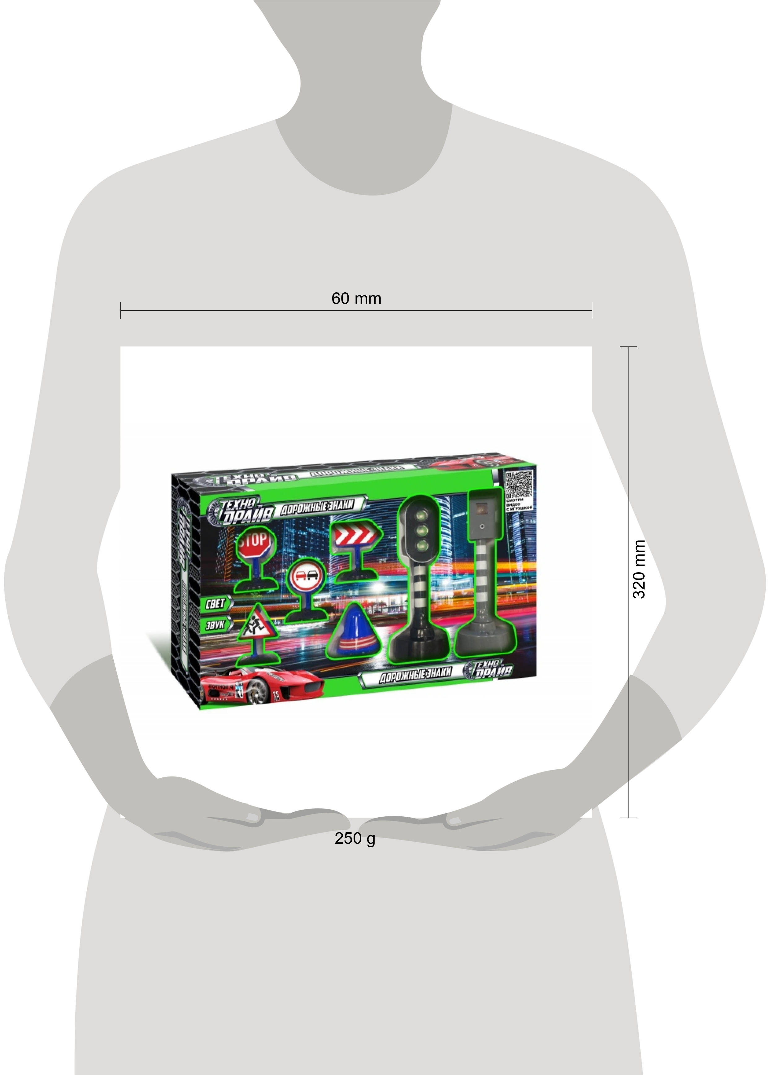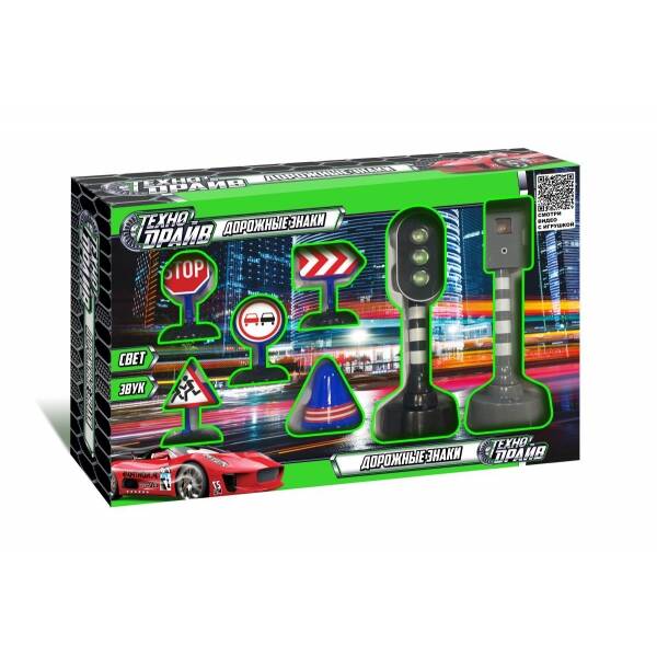 Набор дорожных знаков ТМ "Технодрайв" станет прекрасным подарком для маленьких поклонников легендарных гоночных машинок. Особенности и комплектация: - световые эффекты - звуковое сопровождение - светофор - камера безопасности дорожного движения - знаки: "Поворот", "Дети", "Стоп", "Объезд запрещен", "Дорожный конус" Оригинальные модели светофора и камеры безопасности дорожного движения, выполненные с учётом всех особенностей прототипов + набор дорожных знаков обязательно понравятся вашему ребёнку. Каждая деталь отлично проработана. Реалистичный дизайн данной модели плюс световые и звуковые эффекты позволят с головой погрузиться в игру, придумывая новые интересные сюжеты. Кроме того, эта игрушка познакомит малыша с правилами дорожного движения. Игра с набором дорожных знаков ТМ "Технодрайв" развивает: - координацию движений - внимание - моторику - фантазию и воображение Размер: 32 х 21 х 6 см. Материал: пластмасса. Работает от 4-х батареек типа LR44 (в комплекте). Рекомендовано детям от 3-х лет.