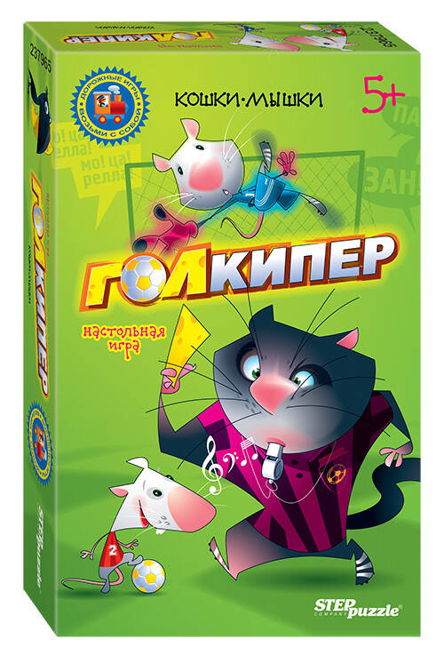 Дорожная игра "Голкипер" - настольная игра из серии "Кошки-мышки". Разработана ведущими детскими психологами и педагогами. Защитники, голкипер, судья, пенальти - здесь всё как в настоящем футболе. Кто же победит - "Маусдам" или "Кетфор"? Для кого игра? - Придумана для детей от 5 лет. - Игра развивает ловкость, меткость, мелкую моторику и навыки счета. Что в коробке? - игровой планшет - 1 шт.; - футбольные ворота - 1 шт.; - декорация "табло" - 1 шт.; - трамплин - 1 шт.; - фигурки - 5 шт.; - пластмассовые подставки - 6 шт.; - пенопластовые мячи - 10 шт.; - призовые жетоны - 10 шт.; - сырный кубок - 1 шт.; - правила игры. Как играть? Цель игры - забить как можно больше голов в футбольные ворота. Мяч в ворота забивают следующим образом: разместить мяч на трамплине и щелчком отправить его в ворота. Перед игрой рекомендуется потренироваться забивать мячи в ворота. Время игры. Время игры зависит от количества и возраста участников. В среднем время одной партии составляет 15-20 минут. Количество игроков. Оптимальное количество участников от 1-2 человек. Материалы: Картон, пластмасса, древесина, пенопласт, бумага. Инструкция к игре (PDF) Видеообзор игры В серию "Дорожные игры. Возьми с собой" входят: - Дорожная игра "Мудрые совушки" - Дорожная игра "Альбатросы на каникулах" - Дорожная игра "Лето" - Дорожная игра "Живая планета" - Дорожная игра "Поскакали" - Дорожная игра "Мяу-мяу" - Дорожная игра "Прятки-зверятки" - Дорожная игра "Кот-рыболов" - Дорожная игра "А где мой шарик?" - Дорожная игра "Лесные феечки" - Дорожная игра "Веселые пираты" - Дорожная игра "Ку-ку, мой мальчик!" - Дорожная игра "Разноцветные гусенички" - Дорожная игра "Веселые каникулы" - Дорожная игра "Морские обитатели" - Дорожная игра "Волшебный город" - Дорожная игра "Мемо. Звёздная компания" - Дорожная игра "Сырный забег" - Дорожная игра "Морковные гонки" - Дорожная игра "А вы были на Таити?" - Дорожная игра "Парусная регата" - Дорожная игра "Скатертью дорожка!" - Дорожная игра "Рыбалка"