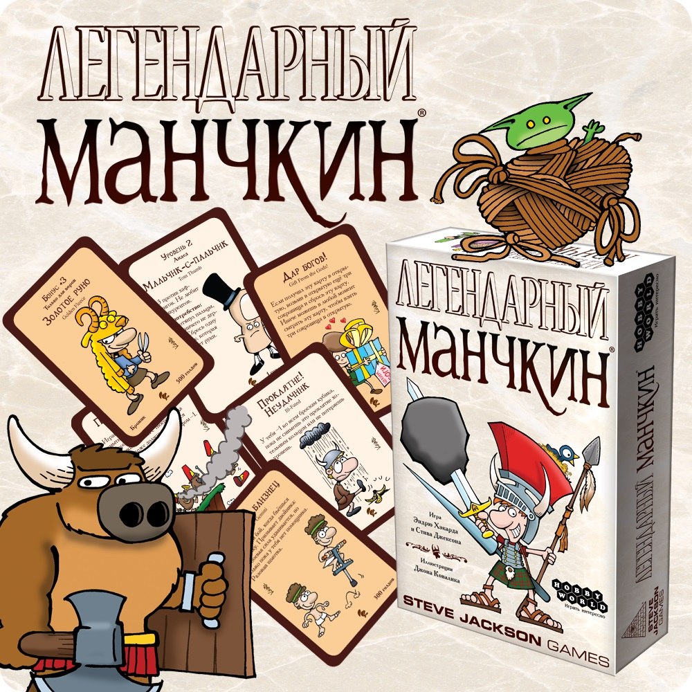 «Легендарный манчкин» бросит к твоим ногам всё культурное наследие человечества. Отправь в небытие древних богов, от Кетцалькоатля и Локи до Шивы и Плутона. Повстречайся с Бабой-ягой, Тонким человеком и лох-несским чудовищем. Наложи руки на Экскалибур, молот Тора и топор Пола Баньяна, облачись в Золотое руно, влезь в хрустальные башмачки и переживи Рагнарёк!