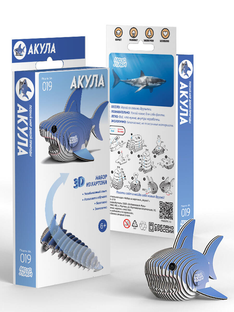 Развивающие 3Д пазл "Мазалики" "019 Акула". В комплекте есть все что нужно для сборки. Собирайте без труда и дополнительных инструментов. Вот что вы получите: Картонная коробка с информацией - 1 шт. Карточки с пронумерованными деталями - 7 шт. Тюбик клея, 5 мл - 1 шт. Бусинки-глазки в бумажном пакетике - 2 шт. Листовка с описанием. Погрузитесь в глубины океана с головоломкой Акула от Мазалики. В этой увлекательной головоломке изображена знаменитая Большая белая акула, самая крупная хищная рыба в мире. Собирая каждую деталь, вы узнаете увлекательные факты об этих величественных созданиях. А знаете ли вы, что они существуют уже на протяжении сотен миллионов лет, что делает их живыми ископаемыми? А их шестое чувство, электрорецепция, позволяет им ориентироваться и охотиться с поразительной точностью. Паззл идеально подходит как для любителей головоломок, так и для любителей акул, эта головоломка обеспечивает как развлечение, так и образование. Погрузитесь в чудеса моря с головоломкой Акула!| Издательство | 3А Композит-русь ООО |