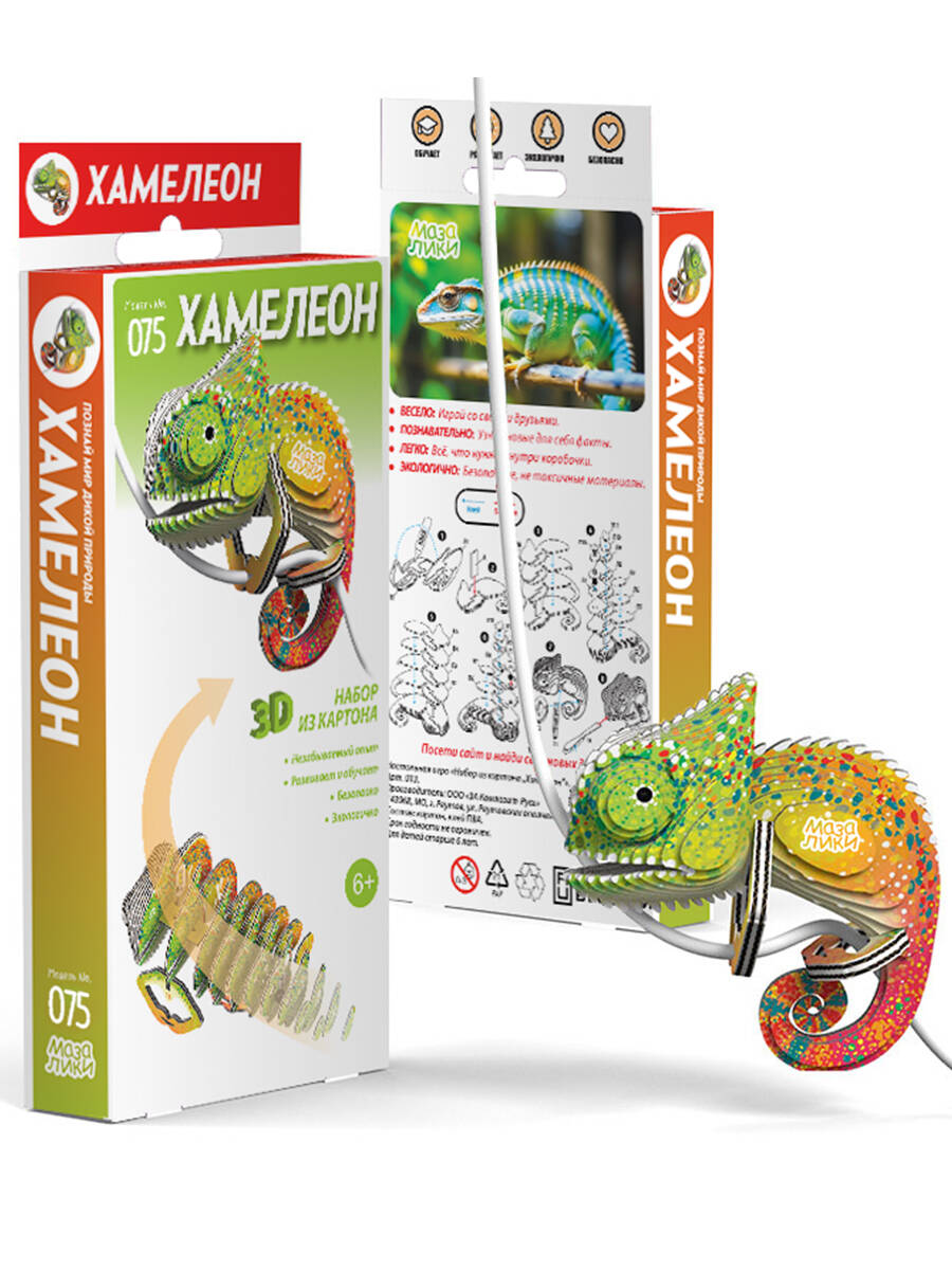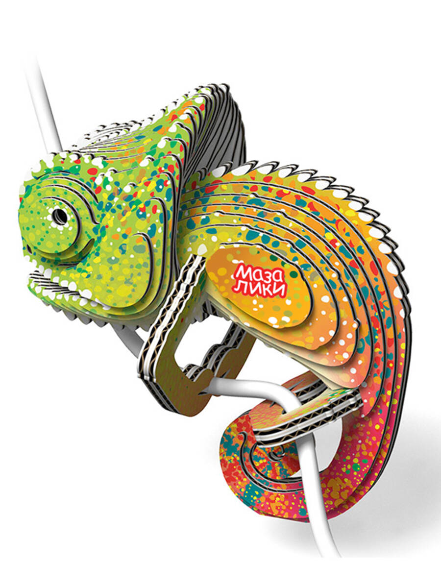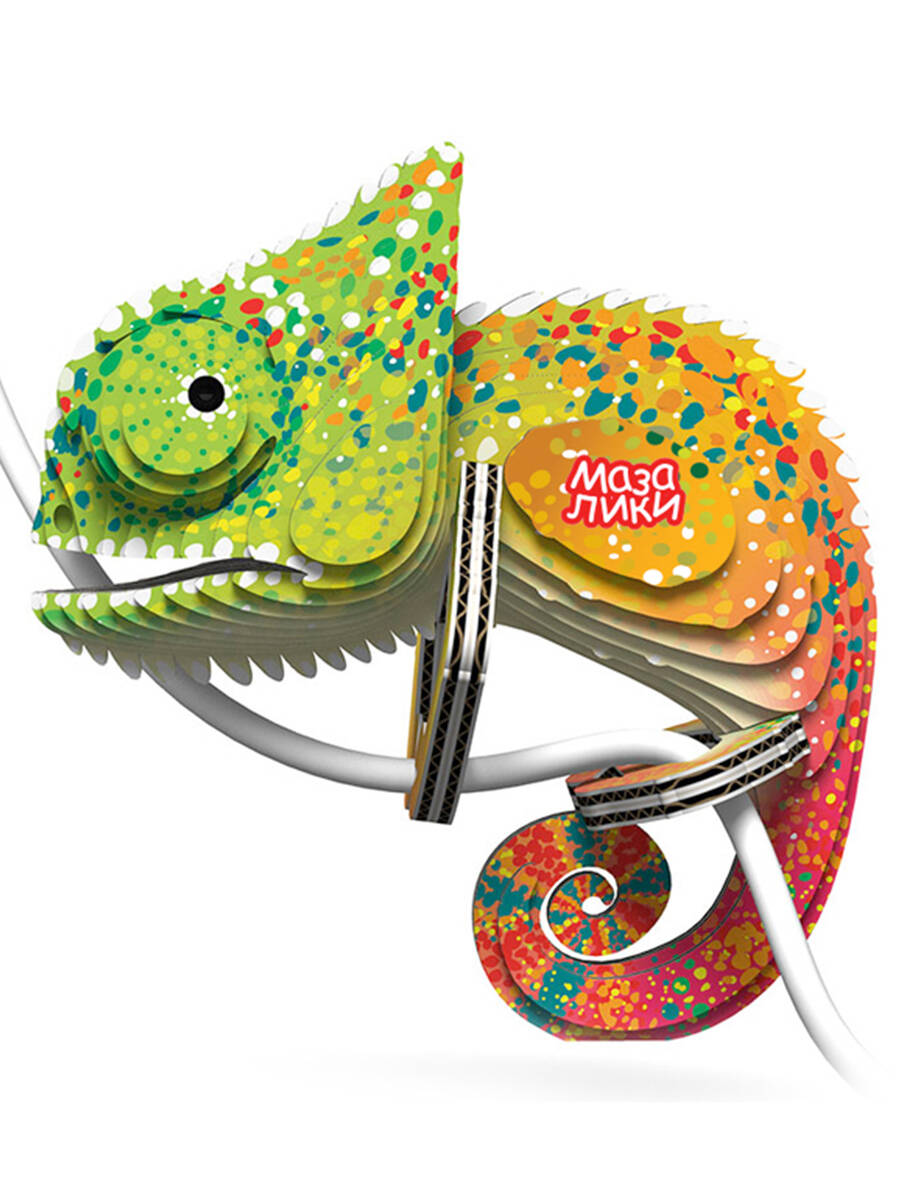 Развивающие 3Д пазл "Мазалики" "075 Хамелеон". В комплекте есть все что нужно для сборки. Собирайте без труда и дополнительных инструментов. Вот что вы получите: Картонная коробка с информацией - 1 шт. Карточки с пронумерованными деталями - 7 шт. Тюбик клея, 5 мл - 1 шт. Бусинки-глазки в бумажном пакетике - 2 шт. Листовка с описанием. Добавьте яркости и индивидуальности вашему рабочему пространству с помощью пазла Хамелеон от Мазалики. Этот очаровательный паззл специально разработан для того, чтобы сидеть на углу вашего ноутбука, стола или на проводах, что делает его идеальным компаньоном для ваших ежедневных приключений. Его яркие цвета и завораживающие глаза мгновенно скрасят ваш день и оживят беседу с коллегами. Как и настоящие хамелеоны, эта головоломка символизирует адаптивность и коммуникабельность. Воспользуйтесь способностью хамелеона меняться и выражать свои истинные цвета с помощью этой восхитительной головоломки. Пусть это вдохновит вас принять новые вызовы и быть открытыми для изменений.