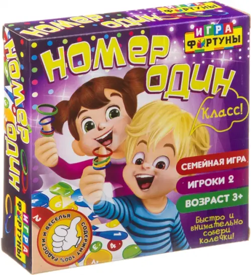 Настольная игра "Номер один" необычная дуэльная игра для самых маленьких. Отличный повод весело и задорно потренировать знание цвета, цифры и понятие последовательности. Игра для наблюдательных и быстрых. Кто быстрее всех найдет и схватит нужные колечки? Разложите разноцветные колечки так, чтобы каждый игрок мог до них дотянуться. Возьмите по карточке с заданием и скорее наденьте на ваш большой палец колечки. Цвет и последовательность должны совпадать с карточкой. Собрали? Тогда скорее тяните палец вверх и кричите "Класс!". Похоже, вы победили. Для большего веселья и сложности, можете не выкладывать колечки на стол, а сразу нанизывать все колечки на пальцы и искать их там.