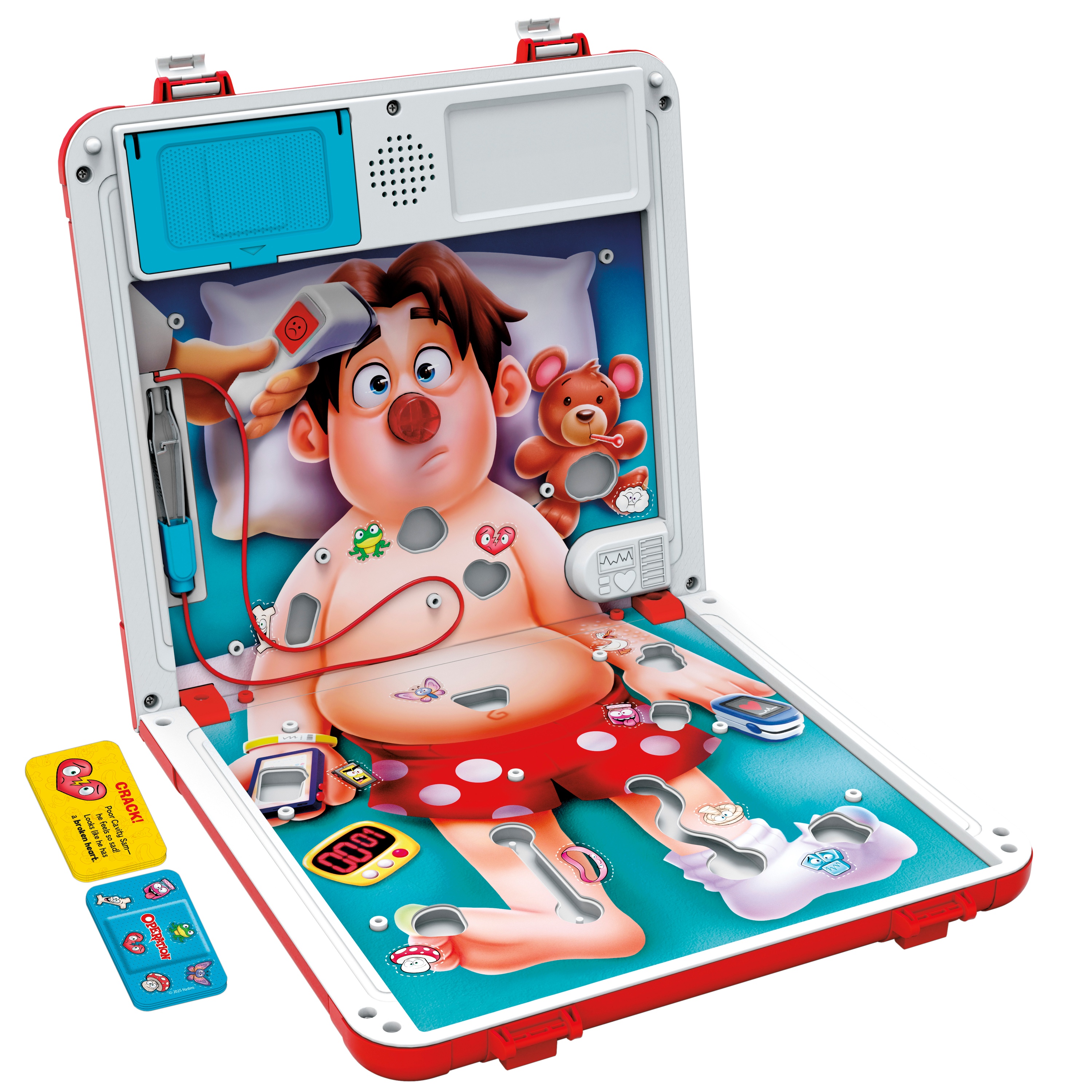 Операция - это любимая настольная игра для детей! В новом издании игры "Операция" можно выбрать 2 режима игры: классический режим "Больница" или напряженный режим "Скорая помощь". В режиме "Больница" маленькие доктора тянут карты "Пластырь" с забавными заболеваниями. Напряжение нарастает, когда дети должны удерживать руки во время операции над Кэвити Сэме, иначе-БЗЗЗТ!-его красный нос загорается! В режиме "Скорая помощь" нужно успеть убрать как можно больше заболеваний до окончания времени. Но ой! Если пинцет коснется краев, Кэвити Сэм будет отрыгивать, вскрикивать и издавать другие забавные звуки, от которых дети хохочут! В обоих режимах побеждает тот, кто удалит больше недугов и "вылечит" пациента. Эта игра для дошкольников поставляется в кейсе со встроенным хранилищем, поэтому ее удобно брать с собой в поездки и играть в любое время, где угодно.