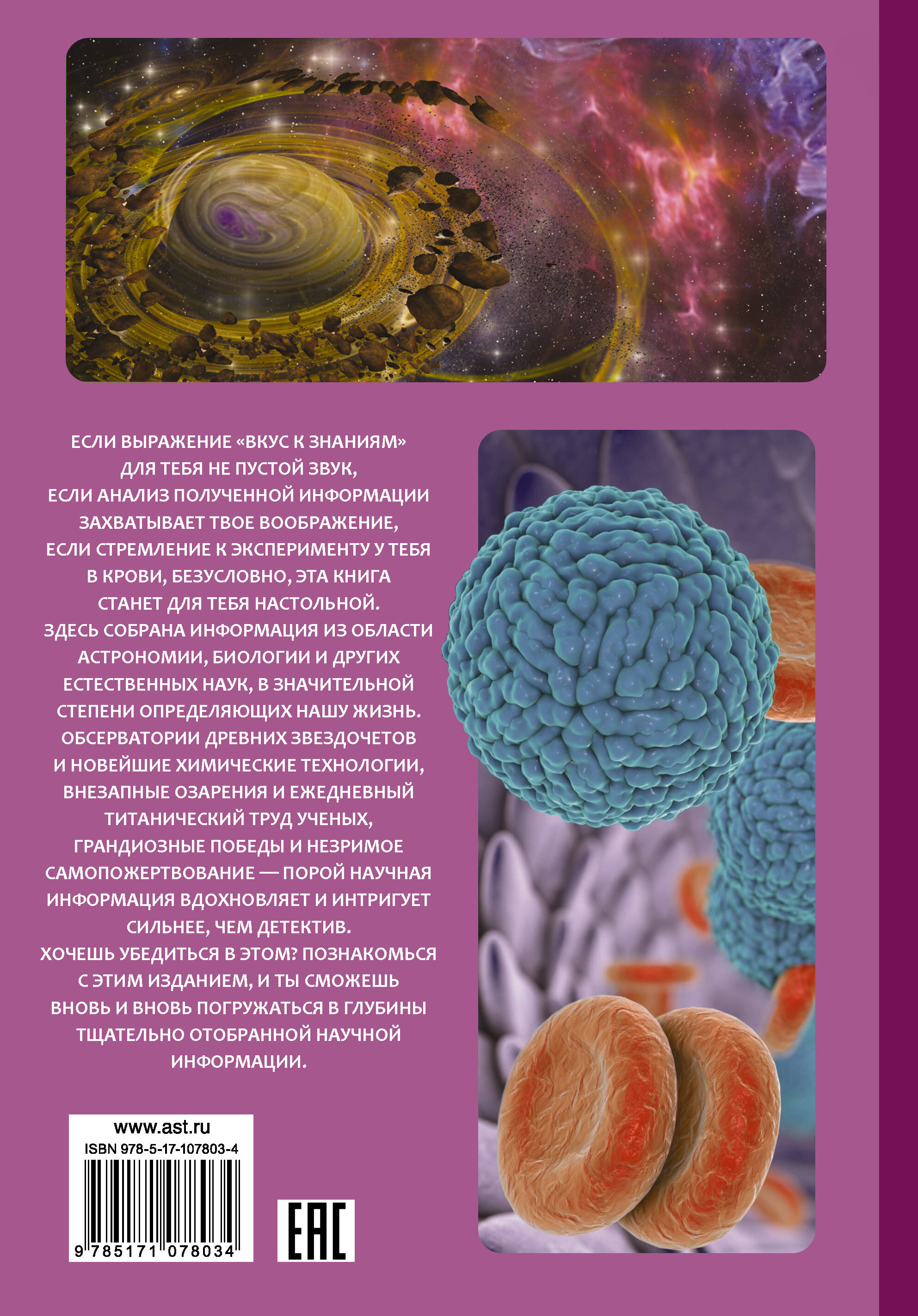 Если выражение «вкус к знаниям» для тебя не пустой звук, если анализ полученной информации захватывает твое воображение, если стремление к эксперименту у тебя в крови, безусловно, эта книга станет для тебя настольной. Здесь собрана информация из области астрономии, биологии и других естественных наук, в значительной степени определяющих нашу жизнь. Обсерватории древних звездочетов и новейшие химические технологии, внезапные озарения и ежедневный титанический труд ученых, грандиозные победы и незримое самопожертвование - порой научная информация вдохновляет и интригует сильнее, чем детектив. Хочешь убедиться в этом? Познакомься с этим изданием, и ты сможешь вновь и вновь погружаться в глубины тщательно отобранной научной информации.| Издательство | ИЗДАТЕЛЬСТВО "АСТ" |