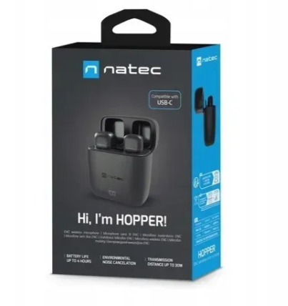 Natec Hopper Dual 3.5 mm (NMI‑2253) комплект из двух беспроводных MEMS-петличных микрофонов с приёмником на базе 3.5 мм аудио‑разъёма, предназначенный для устройств с аналоговым входом. Поддерживает стабильную передачу сигнала до 30 м и оснащён системой подавления фонового шума (ENC), что делает его удобным решением для блогов, интервью и мобильной записи.