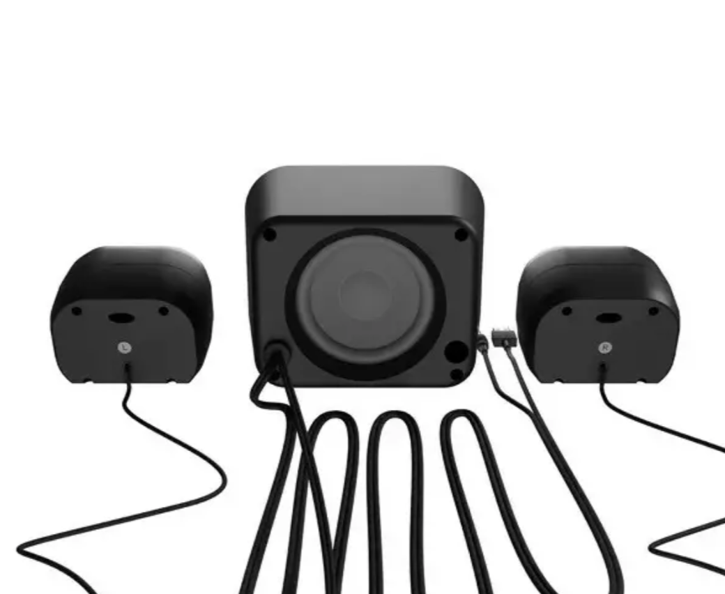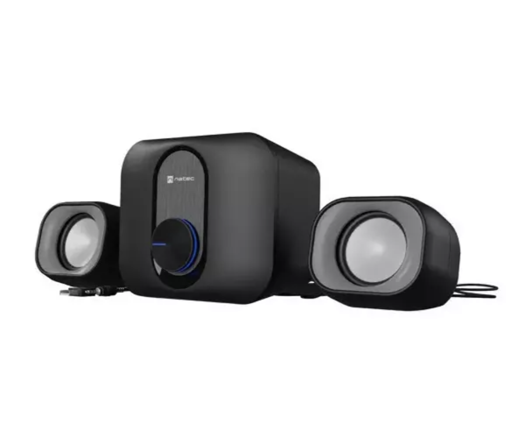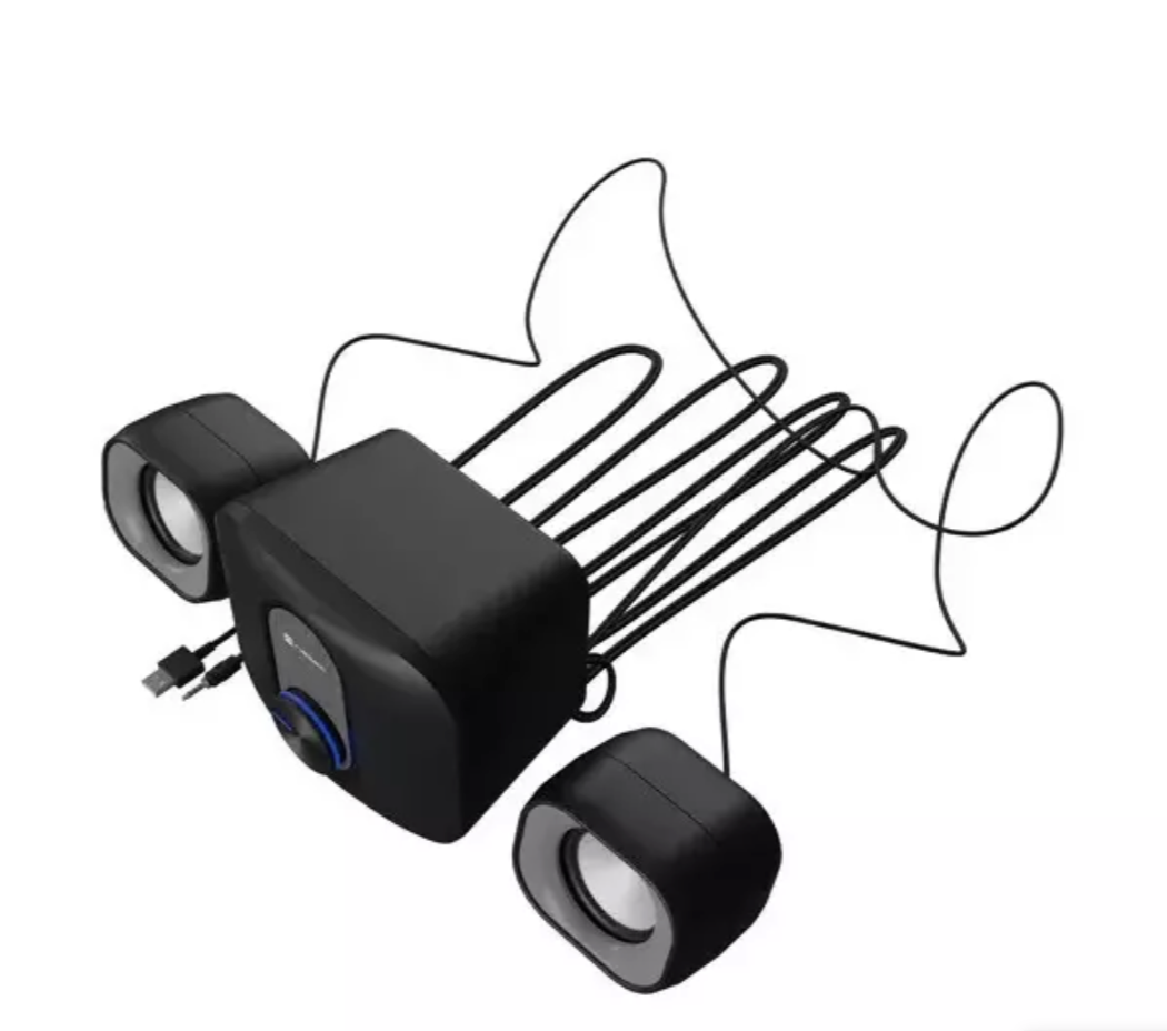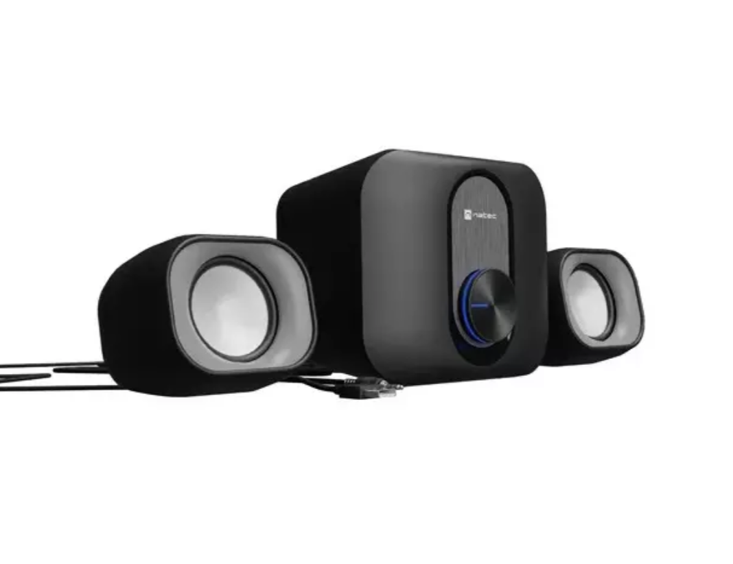 Стерео-набор колонок с активным сабвуфером для ПК. Обеспечивает сбалансированный звук с глубокими басами и чистыми высокими частотами.