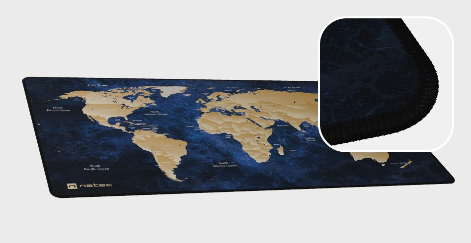 Коврик для мыши Natec World Deep Blue - это модель XXL-размера, предназначенная для покрытия обширной площади рабочего стола и размещения клавиатуры и мыши на одной поверхности. Размеры 800 × 400 мм и толщина около 2,5 мм обеспечивают комфорт и свободу движений. Тканевая поверхность обеспечивает плавный ход мыши, а резиновое основание-противоскольжение удерживает коврик на месте. Эффектный принт в виде карты мира придаёт стилю вашему рабочему месту. Совместим с сенсорами как оптического, так и лазерного типа - подходит для игр и офиса.
