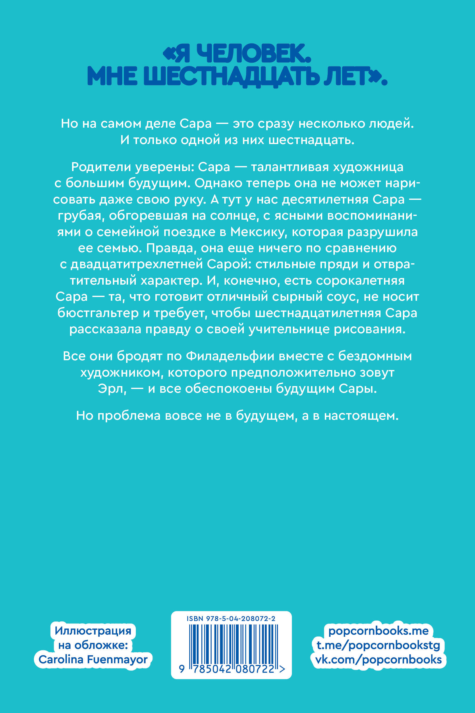 «Я человек. Мне шестнадцать лет». Но на самом деле Сара - это сразу несколько людей. И только одной из них шестнадцать. Родители уверены: Сара - талантливая художница с большим будущим. Однако теперь она не может нарисовать даже свою руку. А тут у нас десятилетняя Сара - грубая, обгоревшая на солнце, с ясными воспоминаниями о семейной поездке в Мексику, которая разрушила ее семью. Правда, она еще ничего по сравнению с двадцатитрехлетней Сарой: стильные пряди и отвратительный характер. И, конечно, есть сорокалетняя Сара - та, что готовит отличный сырный соус, не носит бюстгальтер и требует, чтобы шестнадцатилетняя Сара рассказала правду о своей учительнице рисования. Все они бродят по Филадельфии вместе с бездомным художником, которого предположительно зовут Эрл, - и все обеспокоены будущим Сары. Но проблема вовсе не в будущем, а в настоящем.| Издательство | ООО "Издательство "Эксмо" |