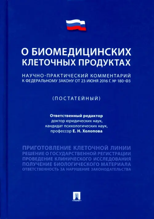 В книге дан постатейный комментарий к Федеральному закону от 23 июня 2016 г. № 180-ФЗ (ред. от 3 августа 2018 г.) «О биомедицинских клеточных продуктах». В его подготовке участвовали специалисты ведущих научных школ России: НШ-2495.2020.7 «Разработка биотехнологических принципов прогностики, диагностики и коррекции социально-значимых заболеваний на основе молекулярно-генетических механизмов реакций клеточных систем на раздражители в норме и при патологии», Балтийского федерального университета имени И. Канта, Института права, экономики и управления Псковского государственного университета.