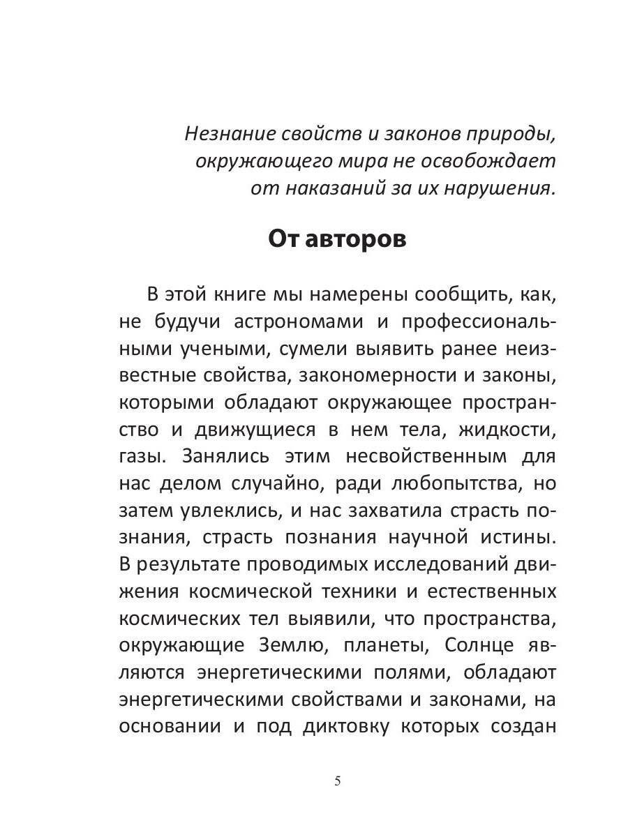 Авторы, исследуя результаты движения космической техники и Луны вокруг Земли, выявили, что пространство, окружающее Землю, является невидимым энергетическим полем, состоит из потенциальной энергии mgh и энергии движения mv2, обладает энергетическими свойствами и законами, на основании и под диктовку которых создаются и происходят как видимые, так и невидимые процессы и явления, происходящие в окружающем пространстве и на поверхности Земли.