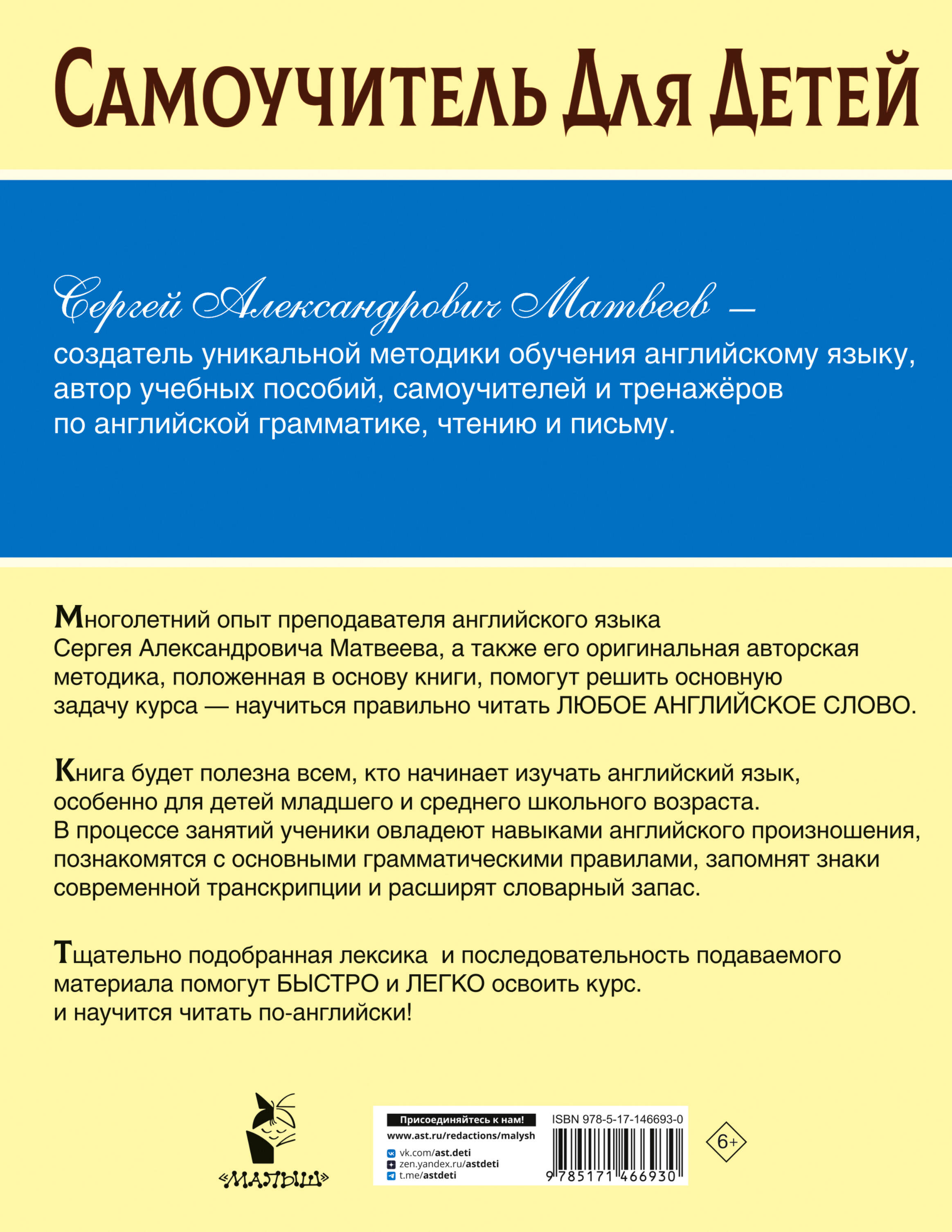 Хотите, чтобы ваш ребенок с интересом освоил английский язык? Тогда подарите ему новую книгу в серии «Самоучитель для детей». Замечательный тренажер по чтению поможет прилежным ученикам сделать первые уверенные шаги в изучении английского языка. • Школьники выучат английский алфавит, научатся правильно употреблять артикли, составлять разные типы предложений, пополнят словарный запас. • Игровые задания развивают мышление и интеллект, расширяют словарный запас, улучшают память и внимание, развивают наблюдательность и мелкую моторику. • Рассматривая картинки и читая вместе со взрослыми английские слова, ребёнок запомнит более 300 английских слов. С нашей замечательной книжкой ребёнок шаг за шагом освоит английский алфавит, научится читать по-английски!| Издательство | ИЗДАТЕЛЬСТВО "АСТ" |