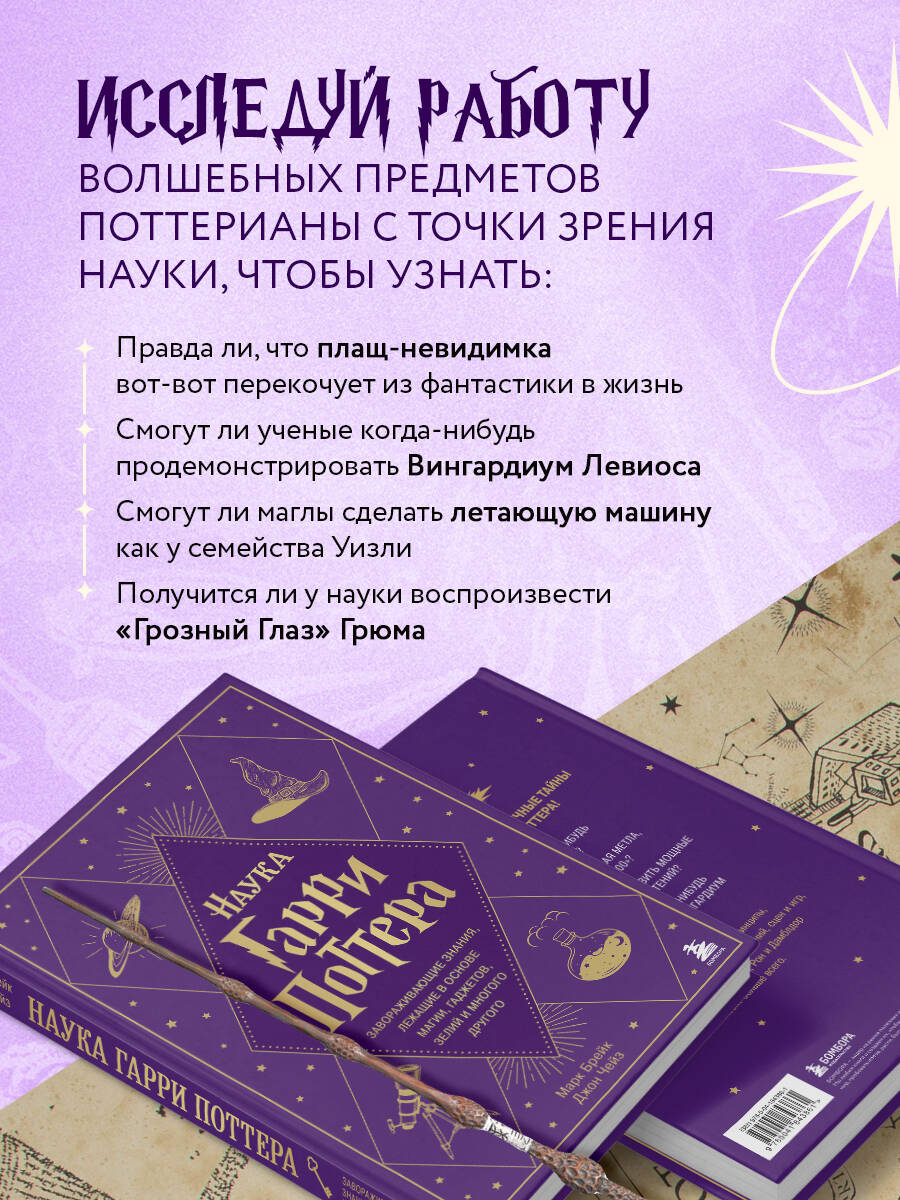 Увидим ли мы когда-нибудь плащ-невидимку? Насколько опасна летающая метла, такая как «Нимбус 2000» ? Как медицина смогла приготовить мощные зелья из необычных растений? Смогут ли ученые когда-нибудь продемонстрировать Вингардиум Левиоса? Автор Марк Брейк исследует научные принципы, лежащие в основе некоторых заклинаний, сцен и игр, которые Гарри, Гермиона, Рон и Дамблдор любят больше всего. Наконец-то раскрыты научные тайны вселенной Гарри Поттера!