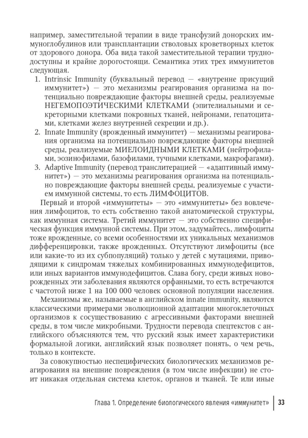Книга является существенно "повзрослевшим" производным трижды переизданного учебника для медицинских вузов "Иммунология. Норма и патология". В издании предложен и обоснован "периметр" четырех функций иммунной системы: иммунной толерантности, цитотоксичности, клиренса внутренней среды и прорегенеративной функции, осуществляемых иммунной системой ежедневно и ежеминутно как в физиологическом режиме в здоровом организме, так и в патогенезах множества приобретенных заболеваний человека. Приведено более сотни примеров болезней, затрагивающих все типы дифференцированных клеток, все органы и системы. Рассмотрено функционирование иммунной системы при иммунодефицитах, инфекционных болезнях, аутоиммунных заболеваниях, аллергических болезнях, онкологических патологиях и во взаимоотношениях "мать-эмбрион", а также возможности и ограничения иммунотропной терапии, взаимодействия иммунной и нервной систем, некоторые аспекты регенеративной медицины, избранные методы исследования. При изложении функционирования иммунной системы во всех случаях главным ориентиром оставалось правило "не навреди". Издание предназначено и врачам, и тем, кто еще только учится на врача, и опытным практикующим медикам для последипломного образования.| Издательство | ГЭОТАР-Медиа |