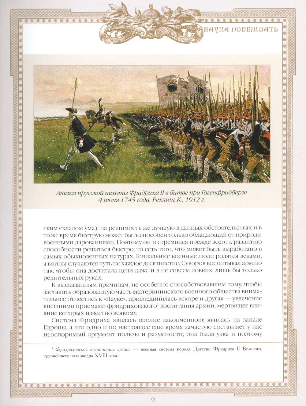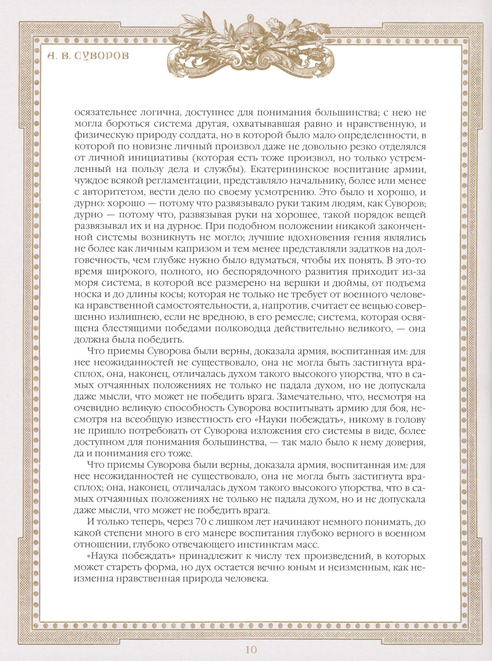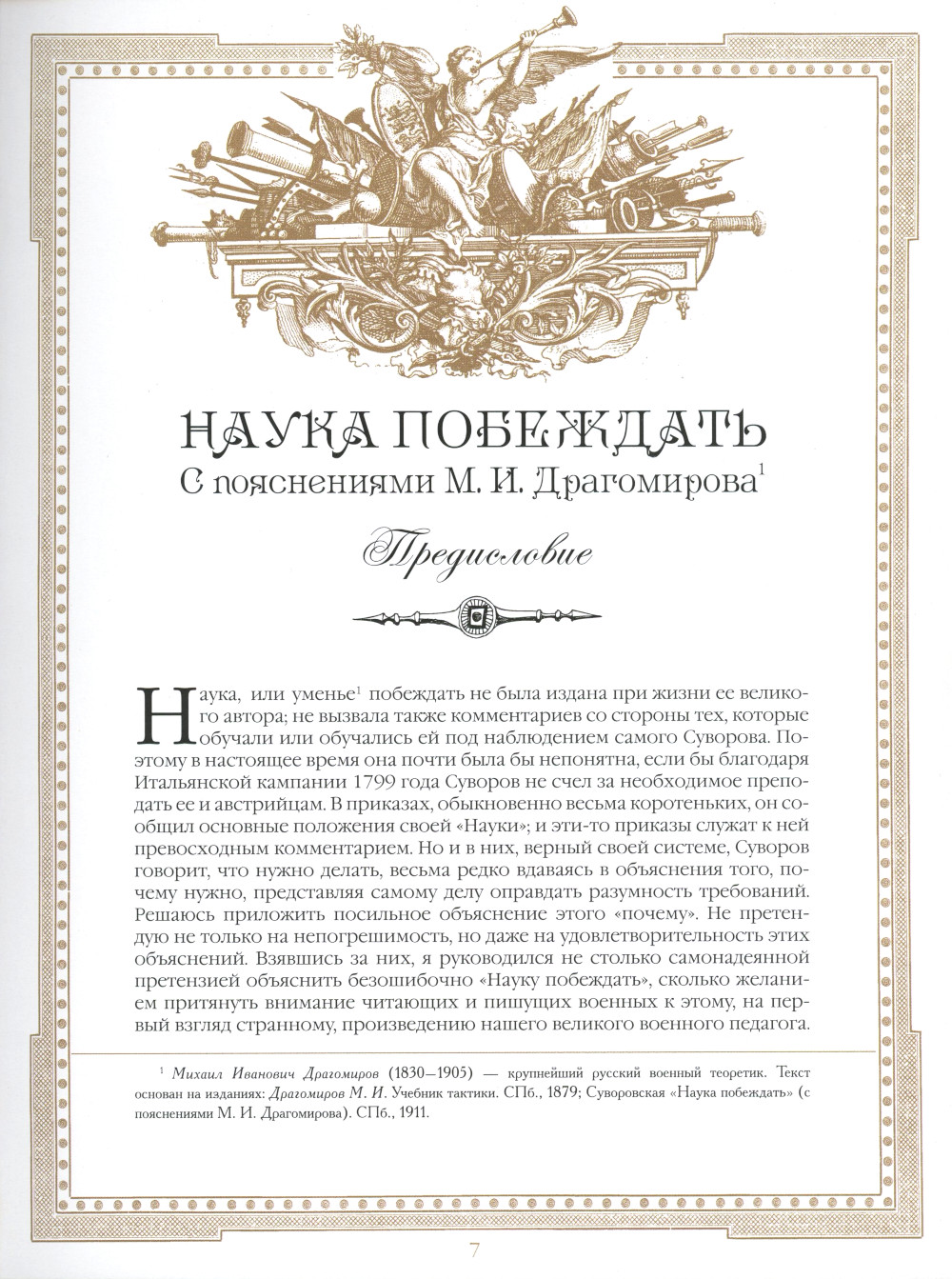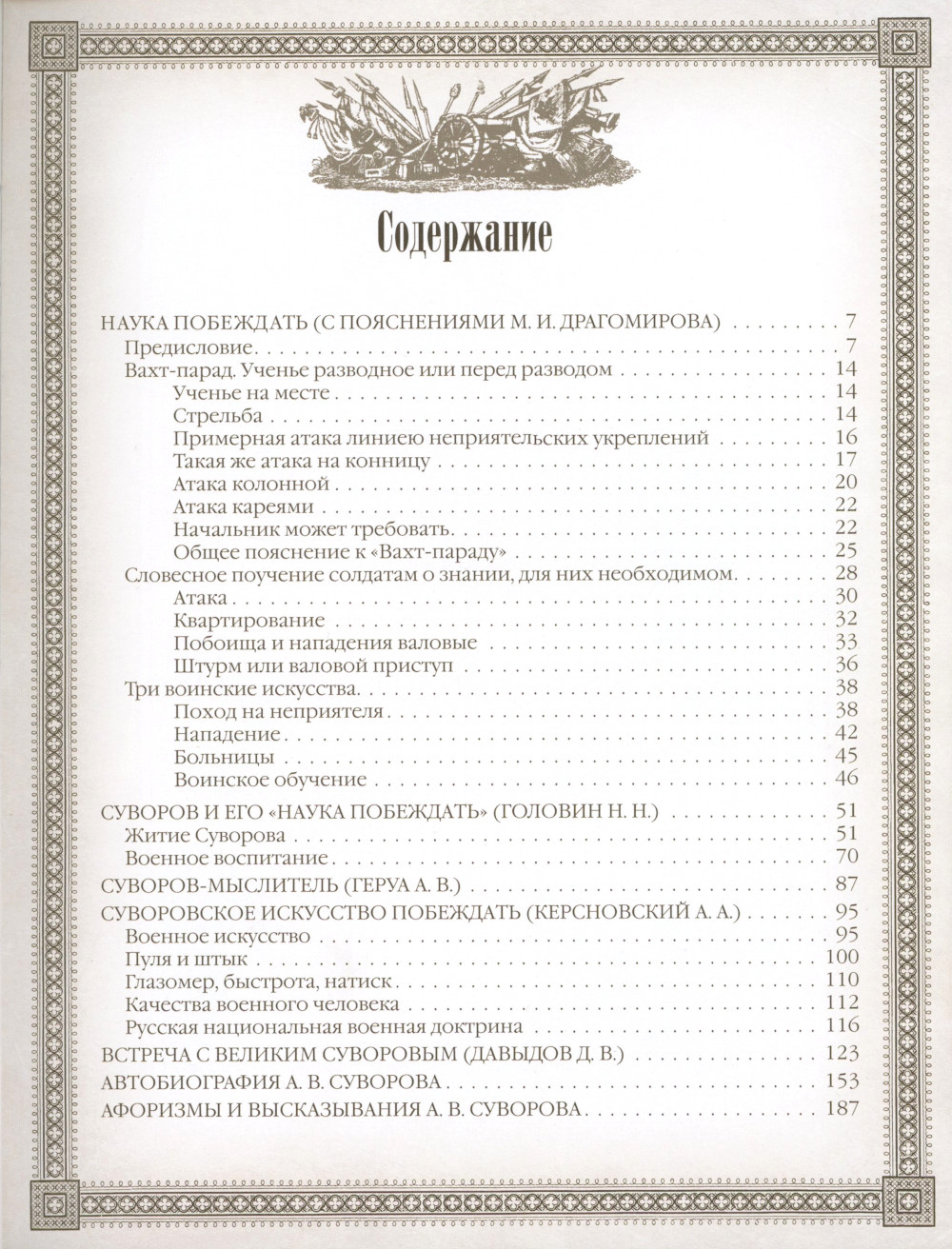 «Наука побеждать» - гениальное произведение величайшего русского полководца Александра Васильевича Суворова (1730-1800). Книга представляет собой универсальное руководство, в котором в лаконичной форме изложена сущность суворовской системы эффективного обучения и воспитания войск, основные правила его военной стратегии и тактики. Именно благодаря этим правилам, этой системе войска под предводительством Суворова одержали множество побед и не потерпели ни одного поражения. В издание также включены произведения крупнейших русских военных теоретиков, посвященные суворовской «Науке побеждать» (Драгомиров М. И., Геруа А. В., Головин Н. Н., Керсновский А. А.), воспоминания современников (Давыдов Д. В.), автобиография и афоризмы А. В. Суворова. Основные правила военного искусства, созданные и примененные Суворовым более 200 лет назад, остаются востребованными и в настоящее время.| Издательство | Просвещение-Союз |