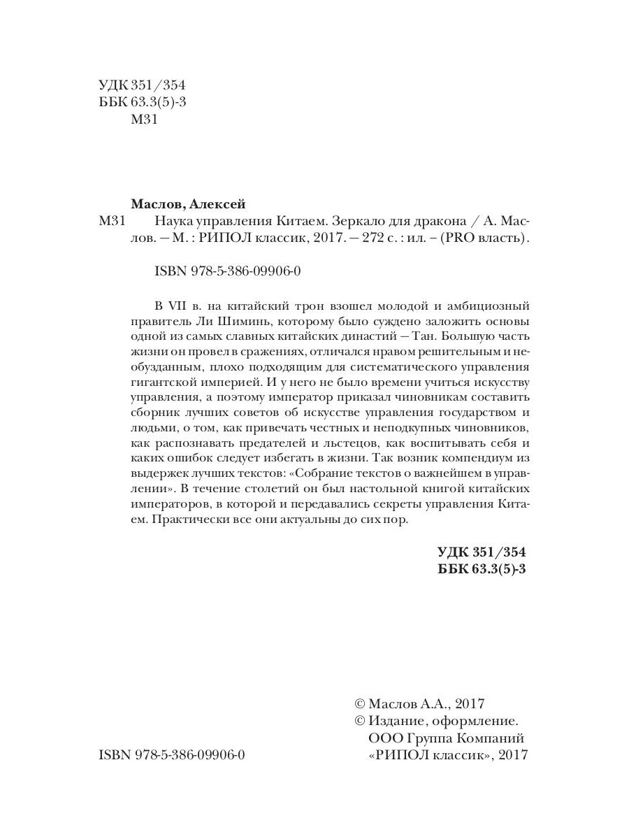 Аннотация: Наука управления Китаем. Зеркало для Дракона